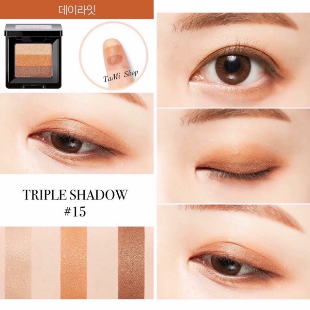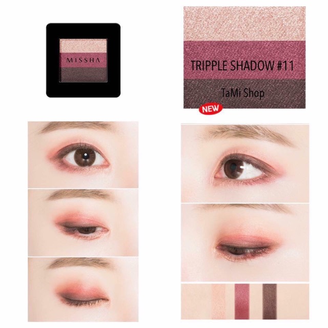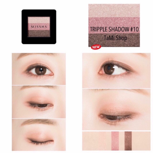 Mấy em này SALE LẠI 50% -->>GIÁ CÒN #105K/1 HỘP. Nhận order đến ngày 14/11/2020 nha mấy bạn. ☆彡 Phấn Mắt Missha với 3 ô màu trang điểm mắt hoàn hảo mang đến vẻ mềm mại và tự nhiên cho đôi mắt. ☆彡 Kích cỡ nhỏ gọn cùng màu sắc phong phú kết hợp với ánh nhũ lấp lánh của ngọc trai mang lại ánh nhìn tuyệt vời cho đôi mắt. ☆彡 Thành phần an toàn không gây hại và kích ứng cho mắt. ☆彡 Màu sắc bền đẹp, lâu trôi. ☆彡 Hộp tiện dụng với 3 ô màu: 1 màu sáng nhất làm màu nền, 1 màu chính đánh bầu mắt và một màu nhấn giúp đôi mắt sâu và cuốn hút hơn ☆彡 Bạn còn có thể dùng màu sáng trong hộp làm phấn highlight tôn đường nét khuôn mặt. Và màu tối không nhũ làm phấn tạo khối nữa nhé. 2. HDSD: * Có 2 cách sử dụng: - SỬ DỤNG BẰNG NGÓN TAY: + Buớc 1: Dùng ngón tay trỏ nhẹ nhàng vuốt từ trái sang phải của phấn mắt để lấy 3 màu đều nhau trên ngón tay. (Nếu bạn muốn thể hiện màu tối hơn, đưa ngón tay trỏ của bạn trên màu mắt và kéo sang hai bên vài lần). + Buớc 2: Đặt ngón tay lên mắt và nhẹ nhàng tán màu mắt từ trước ra sau mắt. + Buớc 3: Khi sử dụng, lớp trang điểm mắt nhanh chóng trong 5s được hoàn thành với độ lan màu tự nhiên. - SỬ DỤNG CỌ HOẶC MÚT ĐÁNH MÀU MẮT + Buớc 1: Sử dụng cọ hoặc mút đánh màu mắt đánh lớp màu nền – màu trên cùng khay phấn mắt – lên mắt. + Buớc 2: Đánh một lớp dày màu mắt chính – màu nằm chính giữa khay màu mắt – lên mí mắt. + Buớc 3: Sử dụng màu kẻ viền mắt – màu dưới cùng khay màu mắt – giữa lông mi để có đôi mắt sâu.