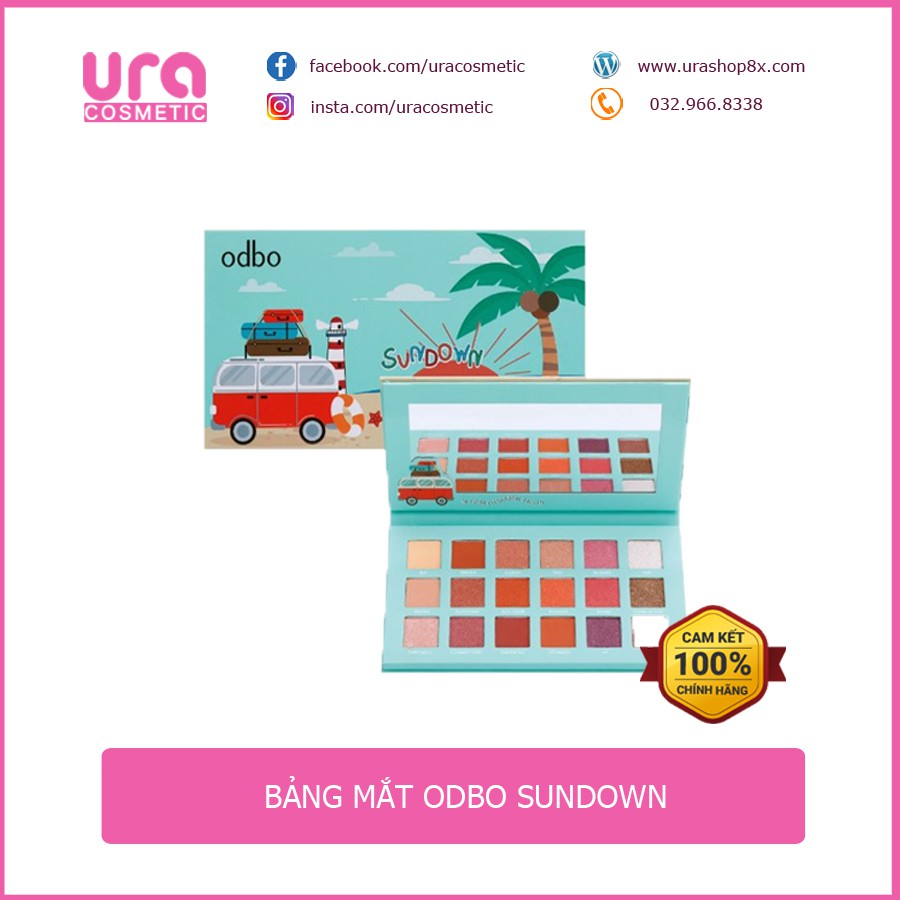 - Đây hẳn là một "siêu phẩm" cho dịp Tết sắp đến vì đa số các tone màu của Obdo Sundown là tone ấm, trẻ trung rất thích hợp cho không khí đầu năm hoặc đi du lịch, đặc biệt là đi biển, không quá sáng cũng không quá nhạt nhòa - Gồm 18 ô màu với các tone như cam năng động, hồng nữ tính, tím dịu dàng, nâu đồng quyến rũ,....có các ô lì, bán lì, nhũ và bán nhũ. - Hạt phấn nhuyễn, mịn, rất dễ tán, apply một lần là phấn đã lên màu chuẩn, độ bám khá cao.