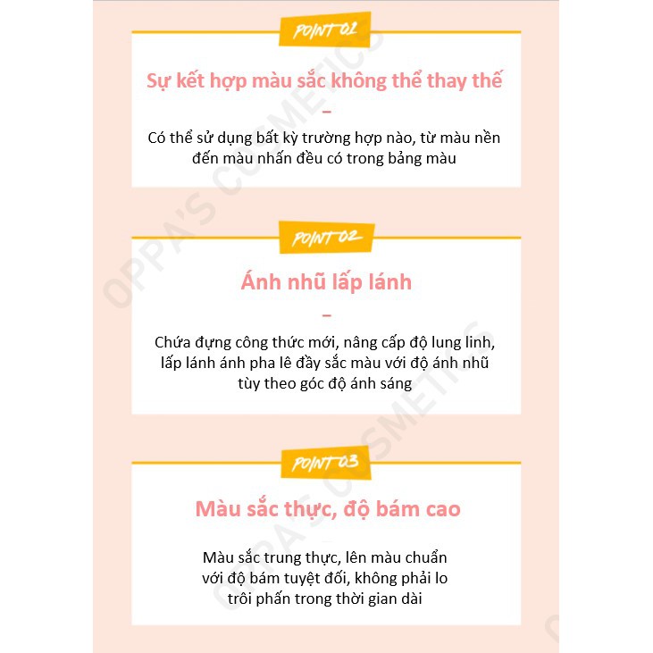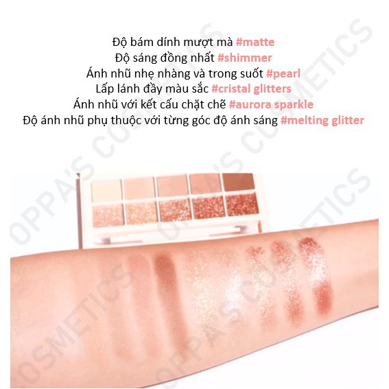 ☑ Chào mừng đến Shop mỹ phẩm của Korean Oppa ("OPPA COSMETIC") được vận hành bởi 🇰🇷 Chuyên gia làm đẹp từ Hàn Quốc - Korean Beauty Professional- Kim Oppa🤞 ☑ Chúng tôi đã xếp hạng 4,96 / 5,00 trên năm (5) Thị trường Shopee (Singapore, Malaysia, Thái Lan, Indonesia, Philippines) ☑ Đảm bảo tính xác thực 100% với chính sách HOÀN TIỀN 100% cho trường hợp hư hỏng và giao hàng sai ☑ Đóng gói cẩn thận với lớp bong bóng dày gấp đôi và hộp chắc chắn ☑ Sẵn sàng giao hàng - Có kho riêng để chứa các mặt hàng đã niêm yết ☑ Công ty đã đăng ký thuộc Cơ quan Thuế Hàn Quốc ☑ Dịch vụ khách hàng 24 giờ ■ Thông tin vận chuyển ☑ Tất cả các sản phẩm của chúng tôi được vận chuyển từ ✈Seoul, Hàn Quốc ☑ Sau khi đặt hàng, sản phẩm sẽ đươc giao hàng trực tiếp thông qua Shopee (thời gian vận chuyển thường sẽ mất 7-10 ngày làm việc) ■ Mô tả sản phẩm CLIO (tên đầy đủ: CLUB CLIO) là một hãng mỹ phẩm cao cấp đến từ Hàn Quốc và được thành lập từ năm 1993. Thương hiệu này được các chị em phụ nữ biết đến thông qua các sản phẩm make up vô cùng thời thượng, hầu hết các sản phẩm của hãng đều nhận được nhiều lời đánh giá khen ngợi từ đa số người dùng từ chất lượng sản phẩm cho đến hình thức bên ngoài. Bảng phấn mắt Clio Pro Eye Palette có thiết kế bao bì “xao xuyến” về độ xinh đẹp với 10 ô màu vô cùng trendy. Màu của bảng phấn mắt có tone màu chủ yếu là cam, hồng, nâu nhưng tùy vào từng bảng màu thì chúng sẽ có tone màu khác nhau. Trong từng sản phẩm đều có đủ màu lì và màu nhũ từ đậm đến nhạt, khi dùng chỉ cần mix các màu tùy ý theo phong cách cá nhân. Ngoài ra bảng phấn mắt này của CLIO có độ bám màu cực tốt suốt nhiều giờ liền vẫn rất đều màu. Chất phấn của Clio Pro Eye Palette có độ mịn vừa phải và lên màu cực chuẩn. Với cây cọ đánh phấn cỡ trung 2 đầu được tặng kèm trong hộp phấn mắt rất tiện lợi khi mang theo ra ngoài. Đầu cọ to dùng đề tán phấn ở bầu mắt, đầu nhỏ dùng để nhất ở đuôi mắt. Đối với những bạn mới tập tành make – up thì bảng phấn mắt này cực kỳ hoàn hảo vì được thiết kế theo từng tone màu nhất định, bạn sẽ không phải “đau đầu” khi không biết phối màu mắt như thế nào . ■ Thương hiệu: CLIO ■ Tình trạng: mới ■ Made in Korea / Ship from Korea