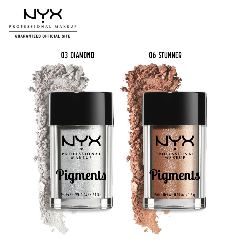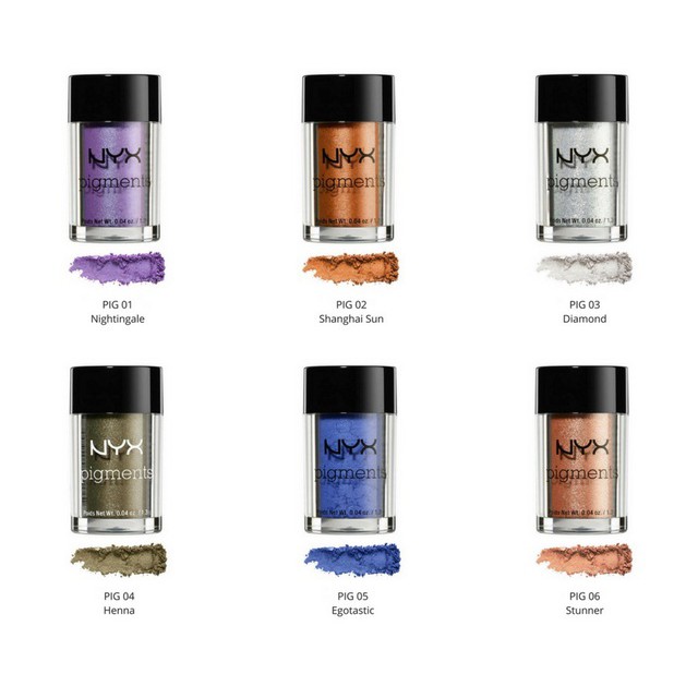 BỘT NHŨ BẮT SÁNG MẶT VÀ TOÀN THÂN NYX PIGMENTS - Với những tông màu nhẹ nhàng hay cá tính sẽ giúp đôi mắt cuốn hút hơn. - Bột mịn giúp bám tốt và bắt sáng rõ nét khi chụp ảnh. - Phấn mắt nhũ đa năng có thể dùng cho mặt và toàn thân giúp lớp trang điểm trở nên lôi cuốn, tươi sáng và nhẹ nhàng. - Màu sắc đa dạng phong phú, dùng được cho các vùng cần highlight.