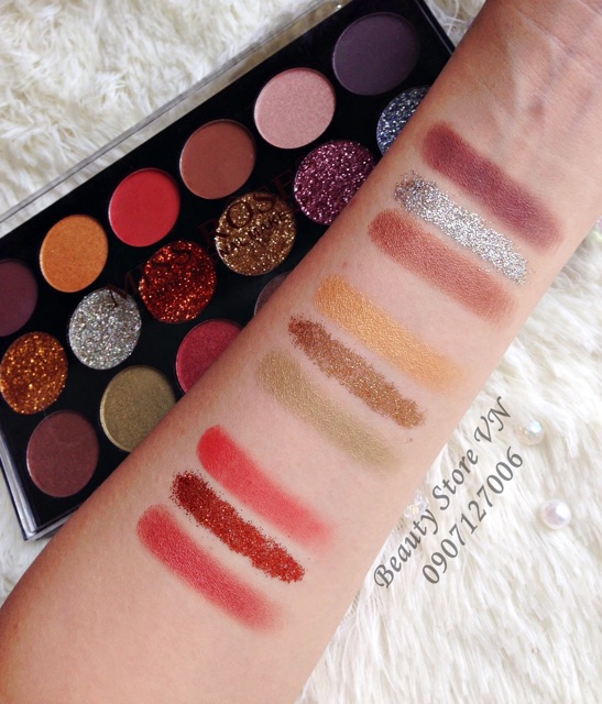 🌈🌈🌈 Em nà khách ơi, em up nốt hình swatch em Ms Rose M3 tone đỏ rượu Burgundy, cả nhũ và phấn mắt đều rất trend ạ! 🌺🌺🌺 Bảng này ngoài chất phấn ko thua kém gì Beauty Creations thì có thêm điểm đặc biệt là có 6 ô nhũ kim tuyến. 🔥🔥🔥 Chất nhũ kim tuyến của Ms Rose hiện là công thức formula mới nhất hiện giờ, nhũ nhưng đánh lên tay mịn và mướt như phấn mắt, ko hề rời rạc hay vón cục như các nhũ kim tuyến khác. 😍😍😍 Bảng màu 18 ô, tone pink coral mới nhất năm nay rất dễ phối, bao gồm: 3 ô lì, 6 ô kim tuyến, và 9 ô nhũ. 🌹🌹🌹 Ô nhũ hay phấn mắt đều rất trend và ko hề kén, bảng mắt tích hợp rất kinh tế vì nhũ kim tuyến hủ màu lẻ đã 60k ạ. 💖💖💖 Giá chỉ 180k thôi khách nhe, chất phấn em rất hài lòng, còn chất nhũ thì ko có gì để chê! 😍