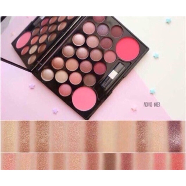 Phấn mắt novo 22 màu bảng 03 Sỉ 65k 22 màu phù hợp với mọi phong cách make up, bạn có thể chọn tone màu yêu thích hoặc mix màu để tạo hiệu ứng tươi mới bắt mắt. Thiết kế của Phấn mắt Novo 22 màu Novo vô cùng phóng khoáng khi tìm tòi và tích hợp 22 màu sắc tươi mới trẻ trung trong 1 bảng phấn nhỏ gọn tiện lợi giúp bạn có thể mang đi khắp nơi và sử dụng bất cứ khi nào cần tới. Với 20 màu mắt trong ô tròn nhỏ và 2 màu má ô tròn to tạo sự bắt mắt và dễ dàng sử dụng. Novo còn tặng kèm cả cọ mắt 2 đầu cho nàng nhé. Vỏ hộp màu đen tạo sự sang trọng cá tính và nổi bật. Công dụng của Phấn mắt Novo 22 màu Màu nhũ có, màu lì có chỉ chờ sự quyết định make up theo phong cách nào của bạn thôi. Bạn đi làm, đi chơi hay đi tiệc nè? Nếu trang điểm hàng ngày thì chỉ cần dặm chút phấn màu sáng lên bầu mắt thôi là cả khuôn mặt đã đổi sắc bừng sáng rồi đó. Còn đi tiệc thì cứ để mấy em màu nhũ trổ tài khiến bạn nổi bần bật giữa bữa party luôn. Cách sử dụng Phấn mắt Novo 22 màu Việc bạn cần làm là lấy cây cọ 2 đầu tặng kèm trong hộp và dặm màu yêu thích lên toàn bộ bầu mắt. Nàng nào cá tính và muốn có sự phá cách thì dặm phấn đậm màu hơn ở phần đuôi mắt và mix thêm chút màu nhũ là long lanh luôn! Xong! Cất cọ, đậy hộp và cho vô túi xách tung tăng xuống phố thôi. Bảng phấn siêu nhiều màu mà màu nào cũng thu hút cũng đẹp xinh ý, cứ bị thích cơ! Thôi thì rinh 1 em về tha hồ biến tấu để xinh để tự tin tỏa sáng nào các nàng! Hàng nội địa Trung