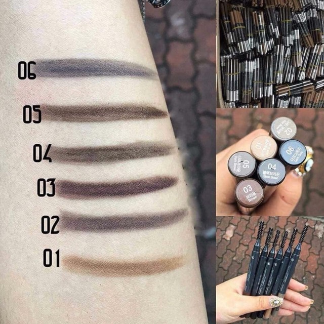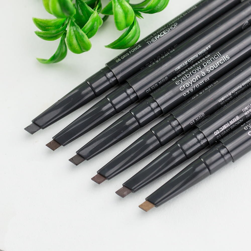 Khuôn mặt hài hòa thì cần rất nhiều điểm, trong đó đôi chân mày đóng một vai trò khá quan trọng, việc vẽ chân mày thanh mảnh tự nhiên để tăng độ sáng long lanh cho đôi mắt hiện nay vẫn còn gặp vấn đề với nhiều bạn. DESIGNING EYEBROW PENCIL sẽ giúp bạn khắc phục các nhược điểm của bạn bởi thiết kế bao gồm đầu chì kẻ và cọ chải lông mày tạo cho bạn đôi lông mày tinh tế và hài hòa. Để hài hòa với màu sắc lông mày, màu tóc nhuộm thì DESIGNING EYEBROW PENCIL có nhiều màu cho bạn lực chọn. Hướng dẫn sử dụng Vặn chì lên khoảng 3mm rồi vẽ theo khuôn chân mày, sử dụng đầu chải để điều chỉnh lại cho chân mày gọn và bám đều màu.