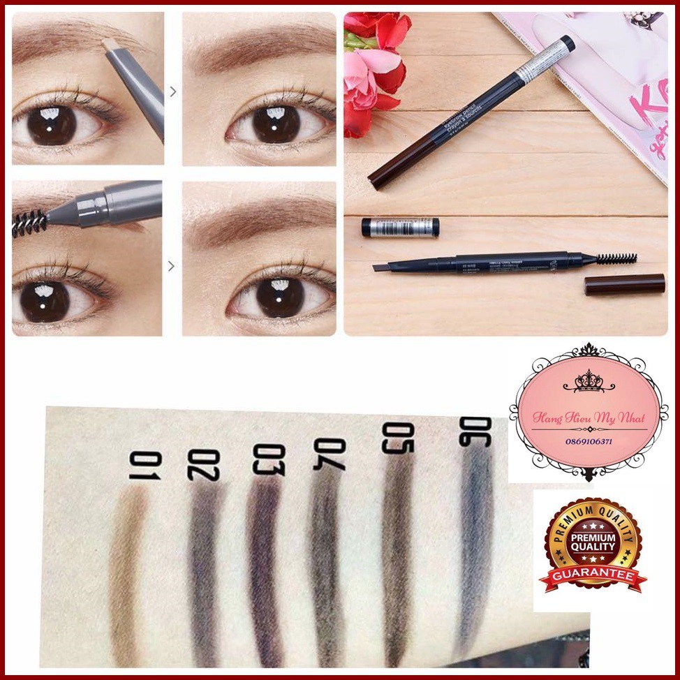 Chì Kẻ Mày Innisfree Auto Eyebrow Pencil Chì kẻ mày ngang lâu phai Innisfree Auto Eyebrow Pencil với thiết kế 2 đầu: - 1 đầu chì mềm cực kỳ tiện lợi cho các bạn mới tập kẻ. - 1 đầu chổi dễ dàng tạo dáng mày và đều chỉnh màu sắc đậm nhạt. Thành phần tự nhiên không gây kích ứng cho da. có sẵn 7 tone màu để lựa chọn: No.1 - Rose Brown (Nâu Nhạt). No.2 - Dark Night Sky Black (Đen). No.3 - Dreamy Dawing Gray (Xám). No.4 - Early Morning Dew Ash Brown (Nâu). No.5 - Midnight Expresso Brown (Nâu Đen). No.6 - Urban Brown Before Day Light (Nâu Sẫm) No.7 - (Nâu sáng).