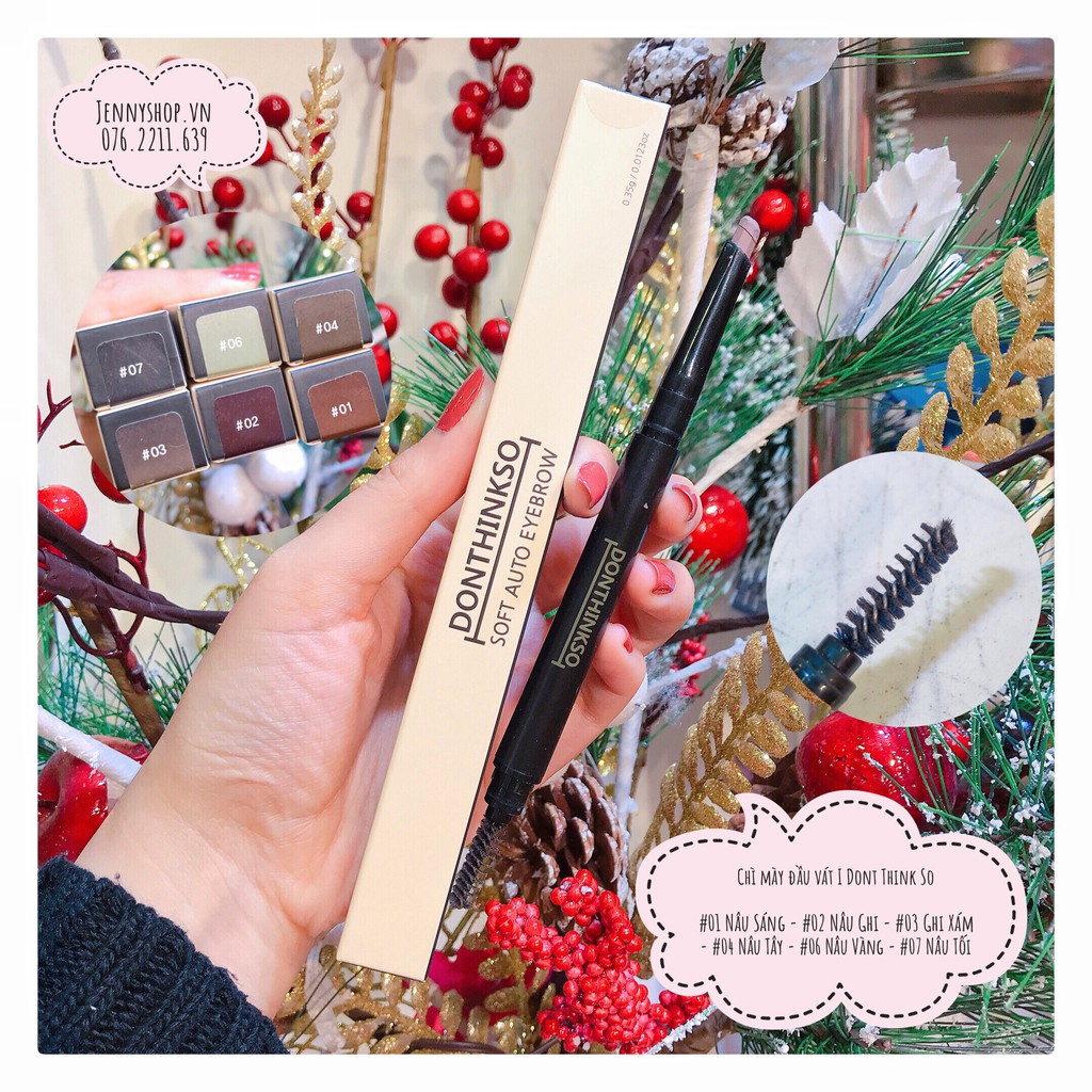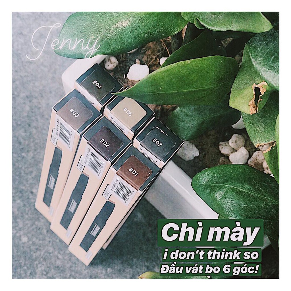 Chì Mày Đầu Vát I Don't Think So Soft Auto Eyebrow ❤️ Dạng đầu vát gồm 6 góc cạnh dễ dàng viền và định hình chân mày, kể cả với người mới người đang tập trang điểm. ❤️ Đầu chổi mềm thiết kế xoắn ốc giúp chải lông mày tự nhiên và đều hơn. ❤️ Chất bột mềm mịn rất dễ dàng trang điểm, tạo độ nét cao nhưng trông vẫn tự nhiên cho người sử dụng. 👉🏼Jenny có sẵn đủ bộ 6 màu nha: #01 : Nâu Sáng (tóc sáng màu, bạch kim, xanh rêu) #02 : Nâu Ghi (tóc đen, màu lạnh) #03 : Ghi Xám (tóc đen, nâu trầm, nâu lạnh) #04 : Nâu Tây (tóc đỏ, tóc sáng, nâu sáng) #06 : Nâu Vàng (tóc vàng, sáng) #07 : Nâu Tối (tóc đen, tóc tối màu, nâu tối) “Hình như anh chủ hãng ghét số 5 hay sao ý, loại nào cũng mãi mới ra số 5 ạ =))” #jennyeyebrow #idontthinksoeyebrow