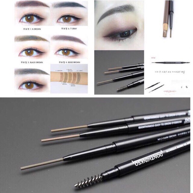 Khối lượng: 0.3g Thương hiệu : I Don't Think So Xuất xứ : Hàn Quốc Đây là chì đầu tròn mảnh Chì kẻ mày I Don't Think So Easy To Draw với thiết kế 2 đầu tiện dụng một đầu chì dạng bút chì vặn dễ sử dụng cho cả người mới tập kẻ mày, một đầu chổi chải tiện lợi để tán đều, cố định sợ lông mày và điều chỉnh màu sắc đậm nhạt. Thành phần từ bột khoáng tự nhiên không gây kích ứng cho da. Ưu điểm Chì kẻ mày I Don't Think So Easy To Draw 0.3g: ✏️Kiểu dáng gọn nhẹ, bắt mắt, kết cấu chì mềm mại nhưng giữ màu rất lâu, giúp đôi mày trông tự nhiên, khuôn mặt sáng và thanh thoát hơn. ✏️Chì kẻ mày I Don't Think So có bảng màu vô cùng đa dạng bao gồm 5 màu khác nhau bao gồm các tông màu đen, xám, nâu và nâu ánh đỏ, dễ dàng phối hợp với màu tóc của các cô gái phương Đông. ✏️Chì có kết cấu mềm mịn, chất chì rất mềm mại và trơn tru, cực kỳ dễ kẻ. Hơn nữa chất chì lại không bị bết lại hay loang lổ, lớp sáp trông rất tự nhiên. Hướng dẫn sử dụng Chì kẻ mày I Don't Think So Easy To Draw 0.3g: Bước 1: Sử dụng tăm bông thấm nước lau sạch lông mày và để khô tự nhiên. Bước 2: Dùng cây cọ trang điểm dọc cánh mũi nhằm xác định chính xác điểm bắt đầu và kết thúc đường vẽ lông mày. Bước 3: Nhẹ nhàng dùng bút chì chuốt chì đường lông mày từ nhạt đến đậm. Bước 4: Dùng cọ tán chân mày chảy thật đều để đường chì kẻ hài hòa với lông mày thật. ❌SẢn Sản phầm có 6 màu: #1: N Brown nâu tự nhiên #2: Dark Brown nâu tối #3: Black Brown nâu #4: Beige Brown nâu tây #5: Eva Brown #6: T Gray ghi đen