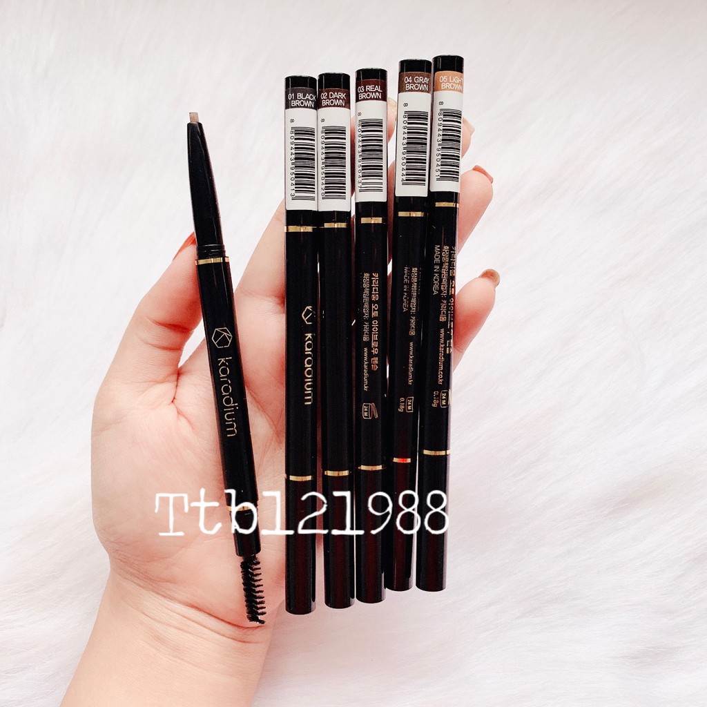 Công dụng: - Khuôn mặt hài hòa thì cần rất nhiều điểm, trong đó đôi chân mày đóng một vai trò khá quan trọng, việc vẽ chân mày thanh mảnh tự nhiên để tăng độ sáng long lanh cho đôi mắt hiện nay vẫn còn gặp vấn đề với nhiều bạn. - Chì kẻ mày Karadium sẽ giúp bạn khắc phục các nhược điểm của bạn bởi thiết kế bao gồm đầu chì kẻ và cọ chải lông mày tạo cho bạn đôi lông mày tinh tế và hài hòa. Để hài hòa với màu sắc lông mày, màu tóc nhuộm thì chì kẻ mày Karadium có nhiều màu cho bạn lựa chọn. Thành phần: - Thành phần hoàn toàn lành tính, không gây độc hại cho da, đạt tiêu chuẩn kiểm định chất lượng quốc tế. - Chứa các hạt bột xốp và khả năng chống lem trôi, bạn có thể giữ cho lông mày luôn chỉnh chu trong cả ngày dài.