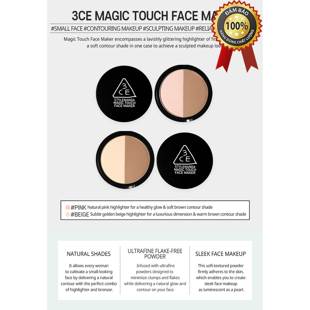 Sản phẩm Phấn Tạo Khối [3Ce] Magic Touch Face Maker hiện đang được bán tại Shopee.