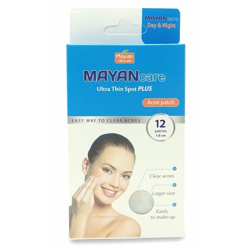 Miếng dán làm giảm mụn Mayan Care – Sản phẩm đánh bay mụn có hiệu quả là Sản phẩm trị mụn hiệu quả không dùng hóa chất, nhanh chóng trị mụn với lớp màng siêu mỏng dễ dàng dán lên lớp mụn mà không gây cảm giác khó chịu. Miếng dán trị mụn Mayan Care với lớp màng siêu mỏng “Dán mà như không dán”, Miếng Dán Làm Giảm Mụn Mayan Ultra Thin Sport Plus Acne Patch được cấu tạo được cấu tạo từ Hydrocollid giúp thấm hút hết cặn bã nhờn, dịch bài tiết gây mủ có trong mụn, đồng thời làm thông thoáng da ngăn ngừa vi khuẩn xâm nhập trở lại. Qua đó, giúp da nhanh chóng lấy lại sự mịn màng, sạch thoáng mà không gây ra sẹo thâm. Đặc biệt sau khi dán bạn vẫn tự tin trang điểm không lo mụn. Do được chiết xuất và bào chế hoàn toàn từ các nguyên liệu tự nhiên các sản phẩm Mayan có tính thân thiện rất cao và hoàn toàn tạo được dấu ấn riêng cũng như nhận được sự tin tưởng rất cao từ người sử dụng. Có 2 loại: + Hộp Hồng: 20 Vòng Tròn tương đương dán được 20 em mụn.Vòng tròn đường kính 0.8cm phù hợp với các mụn nhỏ, hoặc hơi to. + Hộp Xanh: 12 Vòng Tròn tương đương dán được 12 em mụn. Vòng tròn đường kính 1 cm phù hợp với mụn kích thước bự cỡ đầu đũa trở lên