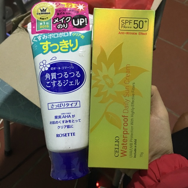 TẨY TẾ BÀO CHẾT DẠNG GEL Rosete pelling Gel Xuất xứ : Nhật Bản Dung tích: 120g - Tuýp đỏ dành cho da khô, tuýp xanh dành cho da thường + Tẩy da chết là quá trình loại bỏ đi lớp tế bào cũ, kích thích sự phát triển của những tế bào mới khỏe mạnh hơn. Vì vậy, trong công cuộc chăm sóc da thì đây là bước bắt buộc để làm sạch da hiệu quả, giúp da hấp thụ các sản phẩm dưỡng. + Gel massage tẩy tế bào chết với hợp chất chiết xuất từ axit trái cây, làm mềm và nhẹ nhàng lấy đi tế bào chết, lớp tế bào vảy sừng mà không gây tổn thương, không làm khô da. Có thể sử dụng cho cả ngực, đầu gối, gót chân… + HDSD . Sử dụng 2~3 lần/ tuần. . Sau khi rửa sạch mặt, lấy khăn thấm ráo nước trên da mặt. . Lấy 1 lượng gel vừa đủ massage đều lên toàn khuôn mặt theo hướng từ dưới lên trên, từ trong ra ngoài, khi massage sẽ xuất hiện lợn cợn, đây chính là da chết ạ. - Sau đó rửa sạch bằng nước ấm