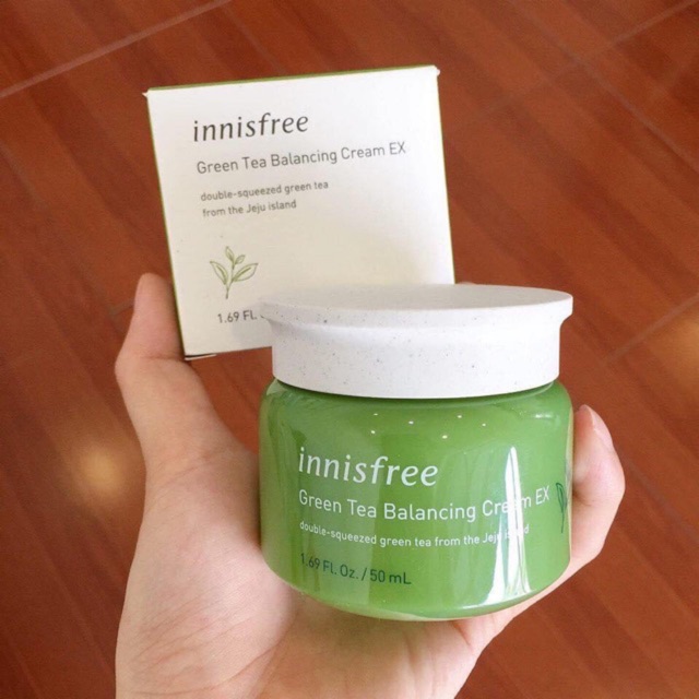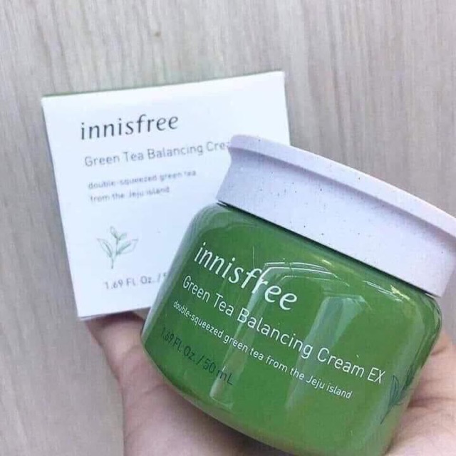 🌿🌿Kem Dưỡng Da Trà Xanh Innisfree Green Tea Balancing Cream EX 50ml BẢN MỚI 2019 🌿🌿 🎲 ====================== ▪️ Kem dưỡng da trà xanh cân bằng thích hợp cho da hỗn hợp, da bị kích ứng với ô nhiễm môi trường, da có mụn nhưng không quá khẩn cấp . Có khả năng làm sạch sâu, tái tạo mới làn da, làm sáng da, chống oxy hóa và ngăn ngừa mụn, viêm hiệu quả. ▪️ Bộ dưỡng da trà xanh của Innisfree được sản xuất ngay tại cánh đồng trà xanh trên đảo Jeju, nơi khí hậu lý tưởng quanh năm, trà xanh được trồng, thu hoạch và thực hiện quy trình chiết xuất ngay tại trụ sở sản xuất của Innisfree trên đảo. Chính trà xanh đã làm nên thương hiệu của Innisfree. ▪️ Thành phần Trà Xanh "làm đẹp" cô đặc chứa 16 loại Axit Amin gấp 3,5 lần. ====================== 1. Dành cho da hỗn hợp, da thường, da mụn 2. Kem dưỡng ẩm, cấp nước, se khít lỗ chân lông, làm mềm da 3. Trà Xanh kiểm soát nhờn, phục hồi da; giảm & ngăn ngừa mụn Hướng dẫn sử dụng: - Sử dụng bước cuối cùng trong chu trình chăm sóc da - Lấy một lượng vừa đủ thoa đều lên mặt vỗ nhẹ đễ dưỡng chất được hấp thụ tối đa. ➖➖➖➖➖