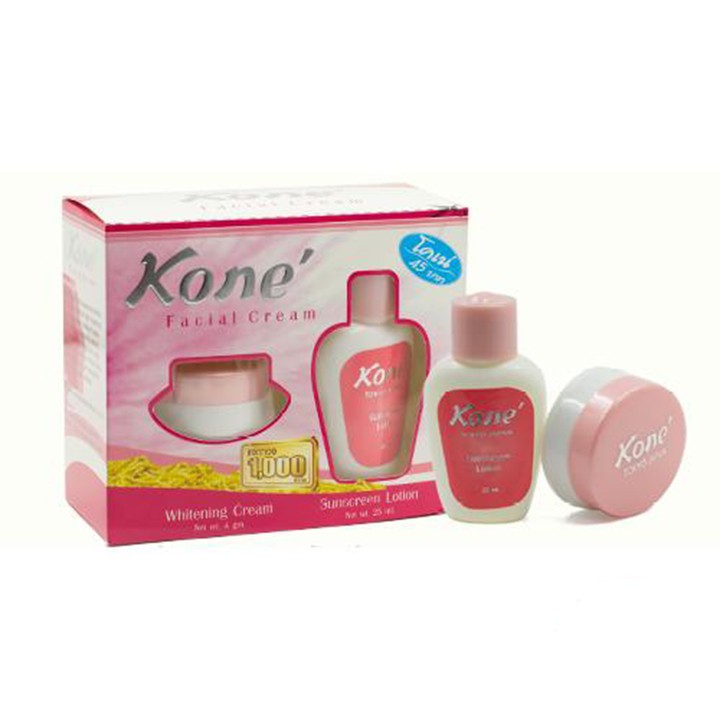 Công dụng Kem face được chiết xuất từ hoa hồng và sữa dê chứa giàu vitamin có tác dụng dưỡng ẩm và tăng độ đàn hồi cho da Giúp da trắng hồng tự nhiên và mềm mịn Giúp mờ thâm nám rõ rệt Kem hoàn toàn an toàn ko gây kích ứng cho da Cách dùng Rửa sạch mặt và thoa 1 lớp mỏng lotion lên da chờ lotion thấm vào da khoảng 2 đến 3 phút Tiếp tục thoa kem face lên da ngày 2 lần ( sáng và tối) Kem Facial Crea Kone Thái Lan Được chiết xuất từ sữa dê và hoa hồng giàu vitamin A, C, D và E có tác dụng dưỡng ẩm cao giúp da mịn màng và trắng dần lên từng ngày. Kem giàu protein tự nhiên an toàn cho da Xuất xứ: Thái Lan