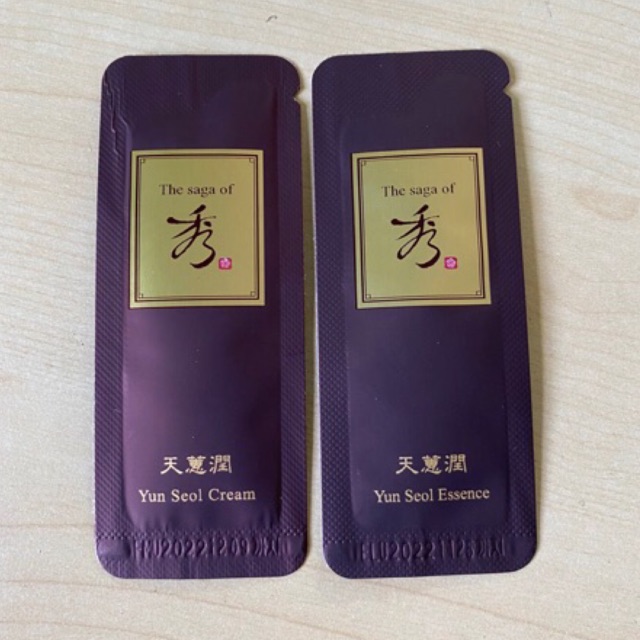 CHUNHYEYUN YUN SEOL ESENCE/ CREAM - Tinh dầu và kem tái sing Saga, sản phẩm tái tạo phục hồi chống lão hoá cao cấp giúp làn da căng mướt sáng mịn Combo 10 gói = 10ml - Làn da tươi sáng rạng rỡ ngời sắc hồng nhuận, thuần khiết - Da căng mịn ẩm mượt, thúc đẩy quá trình tái tạo tái sinh tế bào da trẻ hóa - Ngăn ngừa tình trạng lão hóa cùng khả năng cân bằng thanh lọc da hữu hiệu - Với bộ sản phẩm tái sinh da chiết xuất hoa Mẫu đơn quý và Nhân sâm huyền thoại của The saga of Xiu - Cheon Hye Yoon Yun Seol Set ưu đãi đặc biệt. - Tất cả những tinh túy của hoa Mẫu đơn và thành phần Saponin trong Nhân sâm huyền thoại được The saga of Xiu tinh chế và sàng lọc để đưa vào dòng sản phẩm tái sinh da Cheon Hye Yoon Yun Seol giúp chăm sóc da toàn diện, cho bạn trải nghiệm mới về làn da hoàn hảo trong veo như các bậc vương hậu xưa. Thành phần chính: Chiết xuất lá và hoa Mẫu đơn, hoa Sen, Nấm thông trắng, chiết xuất Vàng, Mật ong, Thông đỏ, chiết xuất Hồng sâm, Cần tây chalcedony, lá Dâu Ấn Độ, Dầu hạt....