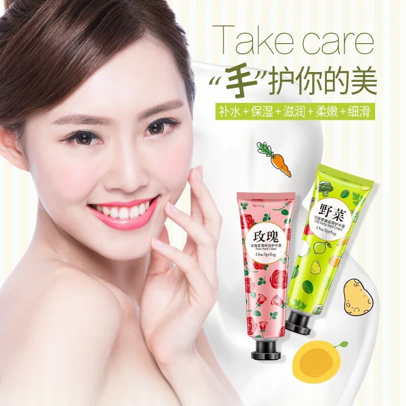 Kem tay dưỡng ẩm One Spring chiết xuất từ những loại hoa quả giàu dinh dưỡng giúp dưỡng ẩm da tay, mềm mịn cực thích nhé - Giúp ngăn ngừa khô da, nứt da, lẻ, hanh, xước móng rô,... - Lưu lại trên da tay hương thơm chiết xuất hoa quả dịu nhẹ, dễ chịu. - Tuýp siêu dễ thương, siêu yêu yêu - Có 5 vị hoa quả thơm mát thích lắm - Dung tích 30g Hướng dẫn sử dụng: - Thoa đều kem lên da tay 1 lớp mỏng. - Massage đều cả 2 tay từ trong ra ngoài và các kẽ ngón tay khoảng 1-2 phút