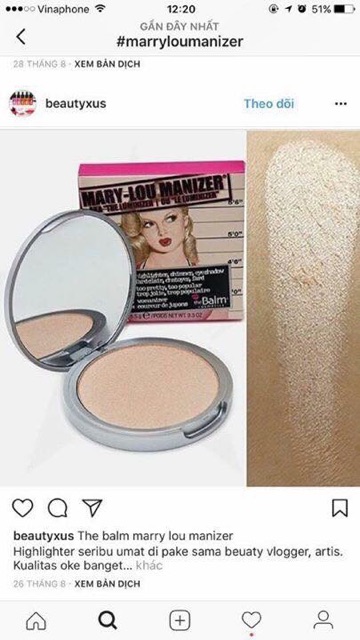 Sản phẩm Phấn Bắt Sáng The Balm Marry Lou hiện đang được bán tại Shopee.