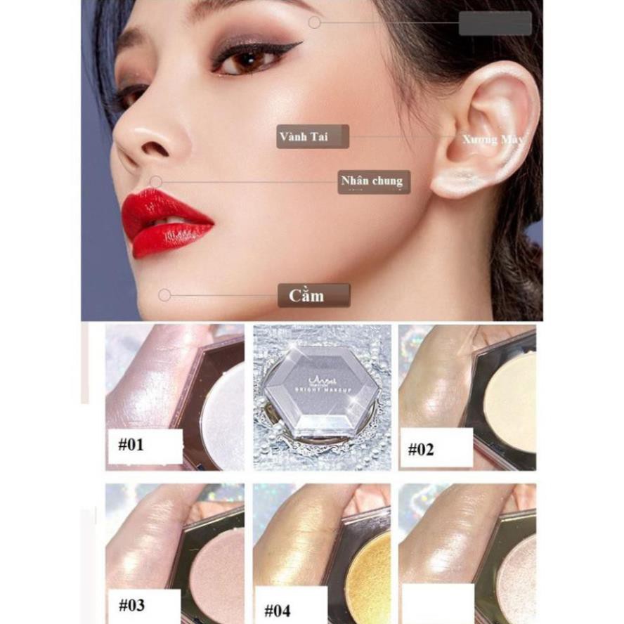 Thiết kế lục giác nhõ gọn 3gram bề ngoài bóng nhoáng soang chảnh dễ dàng đem đi mọi nơi CÔNG DUNG: - Đánh lên những vùng bắt sáng của khuôn mặt như gò má, sống mũi, xương lông mày tạo điểm nhấn ấn tượng - Điểm cộng cho spham này chính là dùng được cho body ( ở xương quai xanh, vai, và cánh tay) - Đặc biệt phấn có thể tán đều ra không bết dính và dính cục và dùng được cho mọi loại da và làm nỗi bật mọi tông da
