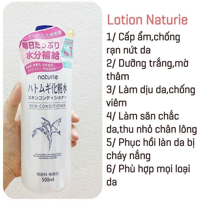 💦💦Lotion Naturie Hatomugi Skin Conditioner💦💦 _____♡♡♡_____ ▪️Giá :240k ▫️Xuất xứ :Nhật Bản ▪️Dung tích: 500ml _____♡♡♡_____ ✔️Thành phần chính là nước, glycerin cấp ẩm cơ bản cho da thêm mềm mịn, căng mọng và khoẻ khoắn. ✔️Ngoài ra còn được chiết xuất từ hạt ý dĩ bổ sung thêm chức năng trị mụn, dưỡng trắng hiệu quả. Tạo một lớp nước dưỡng ẩm trên gương mặt, thẩm thấu từ từ sau vài phút, tạo một lớp bóng nhẹ. ✔️Vừa có thể dùng làm nước hoa hồng vừa có thể dùng để đắp lotion mask hoặc xịt khoáng. ✔️Giúp làn da ngậm nước cực kỳ hiệu quả, chỉ cần thường xuyên sử dụng bạn sẽ thấy làn da căng mọng vô cùng rõ rệt. ✔️Chống viêm, làm mềm và dưỡng ẩm, giảm sự hình thành nếp nhăn, làn da mịn màng, và loại bỏ các đốm đen. ✔️Tái tạo và phục hồi da tổn thương do ánh nắng mặt trời hiệu quả. _____♡♡♡_____ 💌 Chuyên mỹ phẩm authentic - Phân phối sỉ và lẻ 💌 Tư vấn - Khiếu nại - Thắc mắc liên hệ trực tiếp shop 💌Ship Đà Nẵng 10k-15k(hoá đơn trên 3 sản phẩm hoặc trên 500k freeship), ship cod toàn quốc 💌Cam kết chính hãng 💌Tích điểm tặng voucher hoặc quà 💌 Umi Cosmetics- Mỹ Phẩm Đà Nẵng