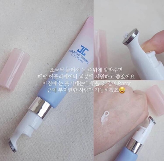 KEM MẮT #JAYJUN Intensive Shining Eye Cream S🅰️LE cực shock các bác ơi‼️ Tuýp 25ml 🍃🍃🍃Đây là bảo bối cho mắt chị em nhé. Mà đồ nhà Jayjun hịn hò k hề r ẻ đâu ạ 👉Không hốt uổng cực kỳ‼️ 🍃🍃 Công dụng : - Cải thiện nếp nhăn - Dưỡng sáng - Giảm thăm vùng mắt Dùng cho cả những vùng khoé cười nữa. Sản phẩm tích hợp đầu maxa tiện lợi và giúp kem thẩm thấu cũng như cho hiệu quả tốt hơn 🔻Hương Đào nhẹ dịu giúp cải thiện làn da mệt mỏi ngay lần đầu sử dụng 🍃🍃Cùng nghía bảng thành phần thần thánh của em ấy nào: 🔻 Hoa anh đào trị thâm và làm sáng da vùng mắt, cải thiện nếp nhăn, dưỡng ẩm và làm dịu da, cùng với cảm giác siêu mát khi đắp sẽ ngay lập tức xua tan mệt mỏi, thư giãn cực kì nha. 🔻 Chiết xuất lá và hoa từ 9 loại giúp vùng da căng mắt căng mọng 🔻 Chứa các chất chống oxy hóa tự nhiên có tác dụng làm dịu da, dưỡng ẩm và giảm thiểu các dấu hiệu nếp nhăn, lão hoá. 🔻 Chiết xuất hoa Leontopotium cùng họ với hoa Cúc giàu chất chống oxy hoá, giúp da vùng mắt mềm hơn, sáng hơn, cải thiện quầng thâm mắt và nếu bỏ trong tủ lạnh trước khi đắp thì còn làm giảm mắt sưng, bọng mắt. 🍃🍃 Tác dụng: - Thích hợp với các bạn hay phải sử dụng máy tính và thức đêm - Tạo cảm giác dễ chịu, không còn mỏi mắt, các vùng thâm dần sáng lên sau 7~10 ngày sử dụng - Đặc biệt, ngoài tác dụng trị thâm mắt, còn có tác dụng giảm nhăn tại khác khu vực khóe mắt, khóe miệng, xóa thâm sau mụn.