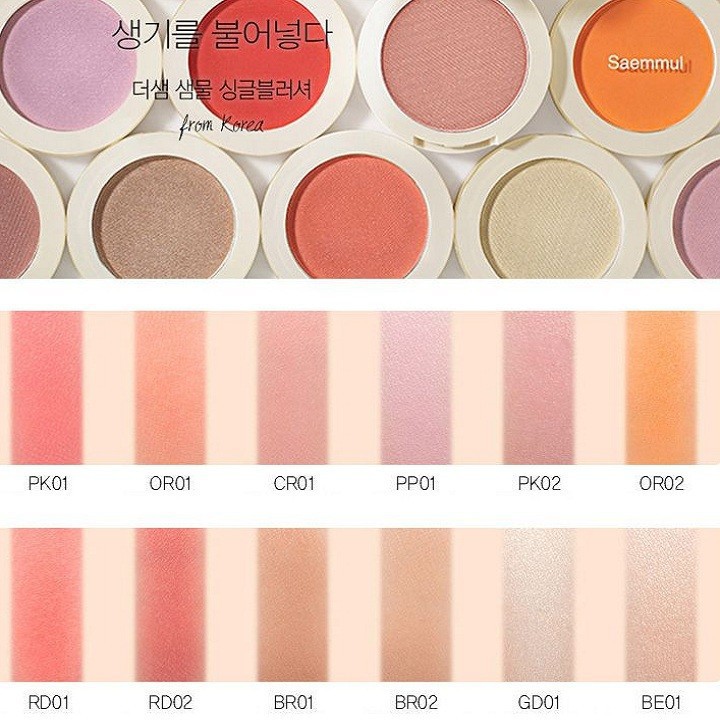 Phấn Má Hồng The Saem Single Blusher là dòng phấn má hồng đang gây sốt ở xứ Kim Chi khi sở hữu bảng màu phong phú, hợp thời trang cho bạn tha hồ lựa chọn cho từng phong cách khác nhau. Đặc biệt, tuy là dòng phấn má hồng drugstore nhưng chắc chắn những bé cưng trong bộ sưu tập Phấn Má Hồng The Saem Single Blusher sẽ khiến bạn có nhưng trải nghiệm bất ngờ và thú vị đấy! Phấn Má Hồng The Saem Single Blusher sở hữu chất phấn siêu mịn mượt, màu sắc lên chuẩn chỉ với một lần chấm cọ, bền màu trên da kéo dài suốt cả ngày và tạo hiệu ứng đôi má ửng hồng tự nhiên cho khuôn mặt. Mang mùi hoa nhẹ nhàng, không quá nồng gắt, sau khi thoa trên da vẫn còn mùi hương thoang thoảng lưu lại tầm hơn chục phút Phấn Má Hồng The Saem Single Blusher PK01 là Màu hồng nhẹ giúp da sáng và trẻ trung. #phấn_má #phanmahong