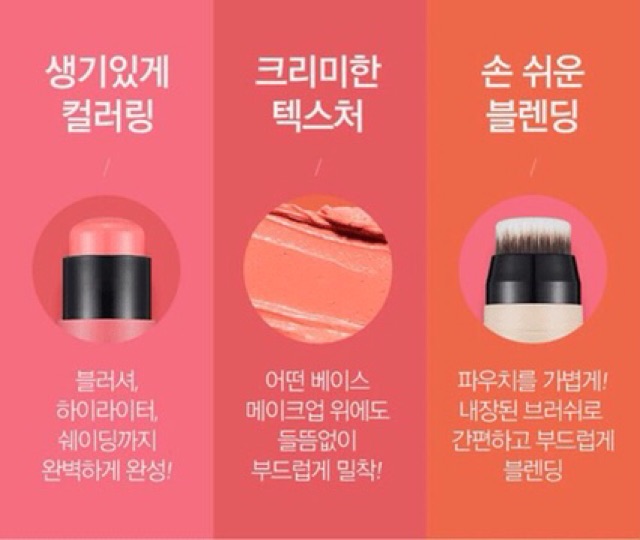 Sỉ ; 28k Từ 12 đến 50 chai ; 26k CÒN 1 MÀU CAM Missha Coloring Multi Stick Sugar Power là sản phẩm phấn má từ hãng mỹ phẩm nổi tiếng Hàn Quốc Missha, có dạng thỏi và được thiết kế theo hình thức 2 trong 1: kem má hồng và cọ tán trong cùng một thỏi. Với thiết kế này sản phẩm nổi trội ở sự nhỏ gọn và tiện lợi trong quá trình sử dụng. Phấn má Missha Coloring Multi Stick Sugar Power có màu sắc sống động, tạo cho khuôn mặt một vẻ đẹp rạng rỡ, đáng yêu. Phấn má hồng Missha Coloring Multi Stick Sugar Power là một trong những sản phẩm má hồng đang được phái đẹp vô cùng ưa chuộng bởi sự tiện lợi, dễ sử dụng và dễ mang theo. Công dụng sản phẩm: - Dễ dàng trong việc trang điểm tạo má hồng. - 2 đầu cọ và kem má hồng tiện dụng. - Thiết kế bắt mắt và nhỏ xinh, dễ cầm và mang đi Hướng dẫn sử dụng: Đối với các màu dùng làm má hồng : dùng đầu stick thoa phấn lên má rồi dùng cọ tán đều sau khi phủ phấn nền.