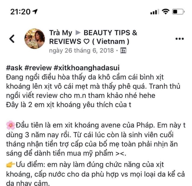 Khách sỉ inbox trước khi mua Làm mát da, cân bằng độ ẩm, giữ lớp trang điểm, bảo vệ da. 💐Sp cần thiết đặc biệt cho mùa hè ! - Nước xịt khoáng Avène tia nước nhẹ như sương - Nước xịt khoáng Avène xịt lên da mỗi khi có cảm giác da bị kích ứng, nóng rát. Dùng sau rửa mặt, tẩy lông. Dùng khi chơi thể thao, đi bơi, đi du lịch, khi thời tiết nóng và cả khi hanh khô. - Nước xịt khoáng Avène rất tốt khi dùng cho trẻ sơ sinh bị nổi mẩn, rôm sẩy, dị ứng. - Nước xịt khoáng Avène có thể xịt bất cứ lúc nào thấy cần - Nước xịt khoáng Avène thích hợp cho mọi làn da,từ trẻ sơ sinh đến người lớn…