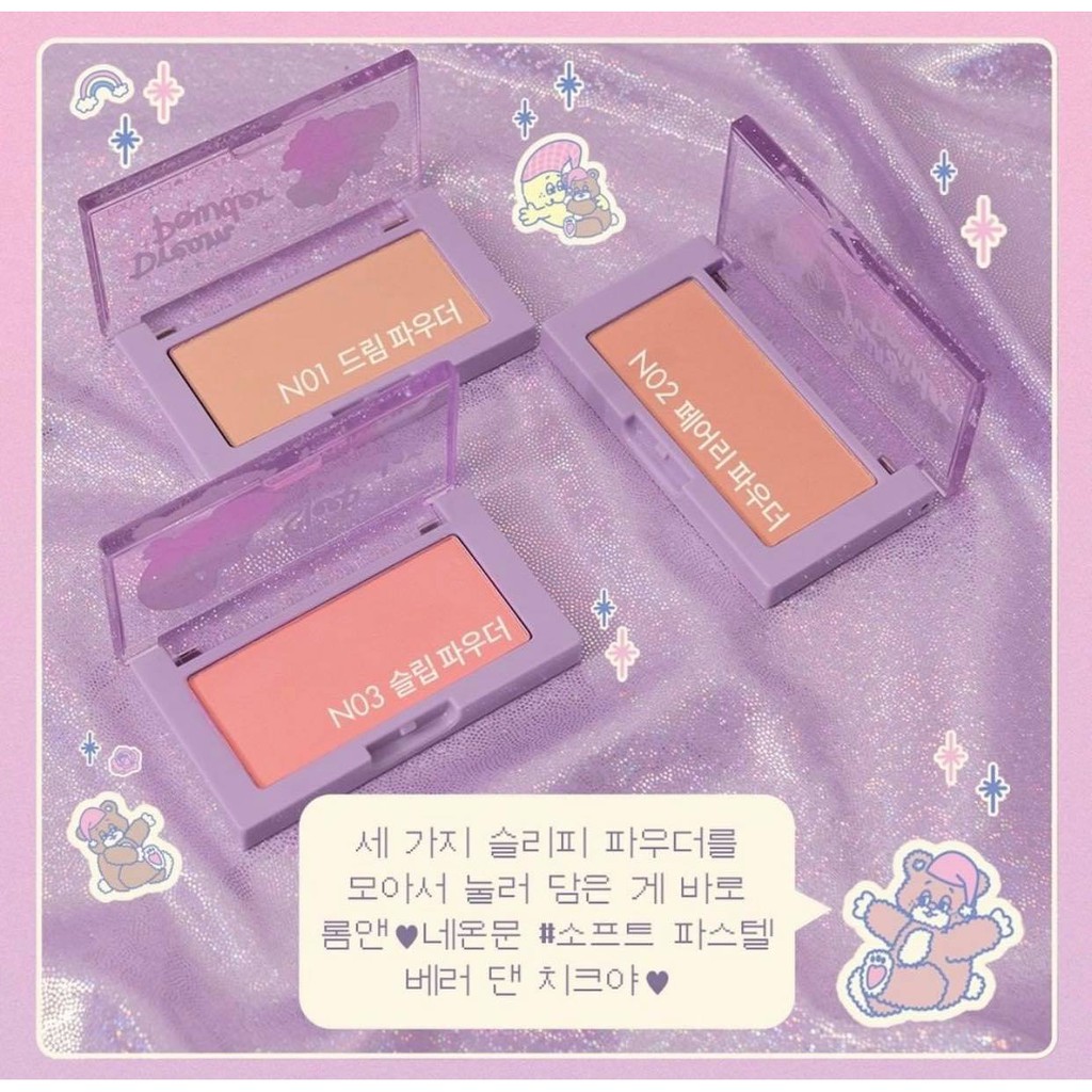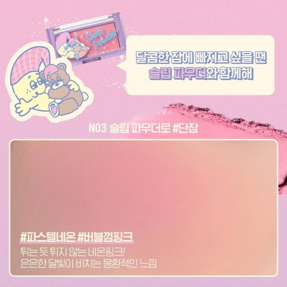 𝒾𝓉'𝓈 𝓉𝒾𝓂𝑒 𝓉𝑜 𝑔𝑜 𝓉𝑜 𝒟𝓇𝑒𝒶𝓂𝓁𝒶𝓃𝒹 🔮 . chào mừng đến với thế giới mộng mơ Dreamland cùng chú gấu Sleepy Teddy được gửi đến từ Romand và Neonmoon dành tặng các bạn! Have a sweet dream💫💫 . Cùng ngắm nhìn dàn cực phẩm trong BST Romantic Moonight lần này có gì thú vị làooo🔥 . . ✨Romand Better Than Cheek (được tạo nên từ lớp bột giúp 'ngủ ngon' của chú gấu Teddy): -N01 DREAM POWDER. -N02 FAIRY POWDER. -N03 SPLEEP POWDER. . Xuất xứ: Hàn Quốc