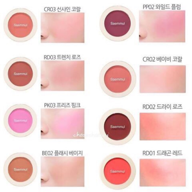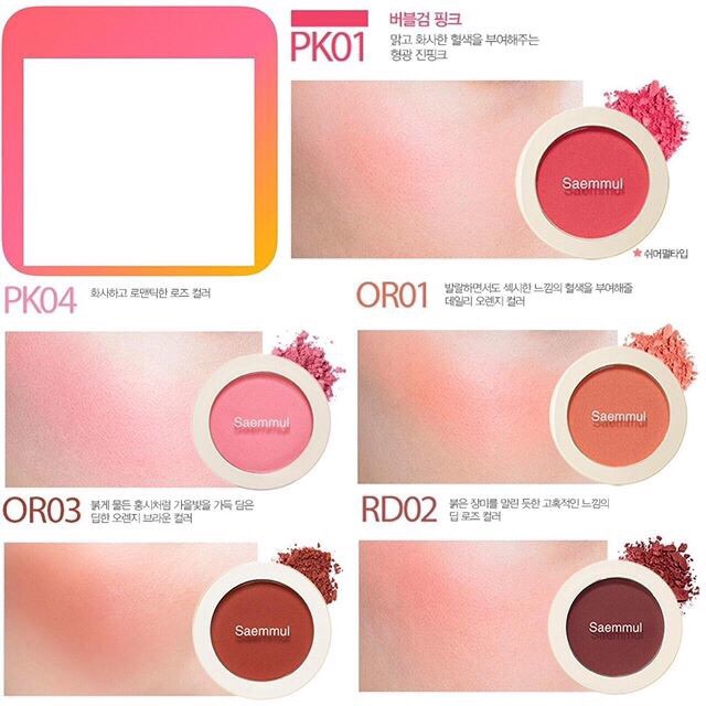 Phấn Má Đơn Xinh Xắn The Saem Single Blusher - Thương hiệu: The Saem Phấn má hồng The Saem Single Blusher sở hữu những tone màu tự nhiên, kết cấu mỏng nhẹ có chứa nhũ giúp cho khuôn mặt trở nên hồng hào quyến rũ. - Chất phấn siêu mịn, màu sắc lên chuẩn chỉ với một lần chấm cọ và không gây tình trạng khô da. - Bột phấn có khả năng kiểm soát mồ hôi, bã nhờn hiệu quả và bền màu, giữ lâu trên da suốt cả ngày dài. - Thành phần bộ phấn có chứa bột cellulose giúp kiểm soát bã nhờn, mồ hôi tuyệt vời mang lại trạng thái khô thoáng cho lớp trang điểm. - Phấn có nhũ tạo sự lấp lánh, thu hút mọi ánh nhìn. - Có thành phần từ 7 loại đá quý và khoáng chất, giúp phấn bám chặt lên da và giữ màu lâu. Phấn còn được bổ sung thêm khoáng chất, chất dưỡng có lợi cho da và ngăn ngừa lão hóa. The Saem Single Blusher sở hữu những tone màu nổi bật, phù hợp với nhiều loại phong cách trang điểm, tạo nên lớp makeup hoàn hảo: #PK01 - Bubble Gum Pink: Hồng huỳnh quang cho làn da sáng, khỏe mạnh. #OR01 - Mandarin Kiss: Màu cam mang lại sự tươi trẻ và gợi cảm cho làn da. #CR01 - Naked Peach: Hồng san hô khiến da trở nên sáng và trẻ trung. #PP01 - Orchid Rumor: Màu tím giúp cho da xỉn màu trông khỏe mạnh hơn. #PK02 - Naked Pink: Hồng nhẹ cho làn da sáng hơn. #OR02 - Selfie Orange: Cam ấm tạo cho đôi má sự tươi mới và dễ thương. #RD01 - Dragon Red: Màu đỏ thể hiện sự độc đáo, hợp thời thượng và rất được ưa chuộng. #RD02 - Dry Rose: Hồng đậm cho bạn vẻ đẹp quyến rũ. #BR01 - Call Me Brown: Nâu tối làm cho khuôn mặt trở nên thon gọn. #BR02 - Naked Brown: Nâu sáng giúp cho khuôn mặt bạn trở nên thon gọn. #GD01 - Gold Volume Light: màu trắng giúp bắt sáng cho gương mặt thu hút ánh nhìn. #GD02 - Soft & Light: màu trắng nâu mang lại điểm nhấn đặc biệt ở vùng sống mũi, cho khuôn mặt trở nên bừng sáng. #Pk04 - Rose Ribbon: Màu hồng xinh xắn cho gương mặt thêm ngọt ngào, rạng ngời. #Pk05 - Yogurt Pink: Màu hồng nhạt Pastel mang lại cảm giác thật tự nhiên, hồng hào. #RD04 - Carrot Red: Màu đỏ hồng cho đôi gò má nổi bật, có thể kết hợp với màu mắt để có thêm bảng màu độc đáo. #mahong #thesaem #mahongthesaem