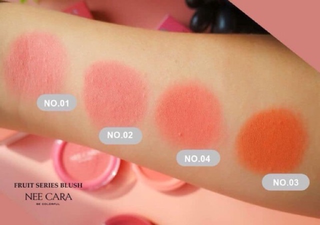 PHẤN MÁ HỒNG NEE CARA FRUIT SERIES BLUSH (HÀNG THÁI) Phiên bản phấn má hoa quả xinh đẹp hết sức, quy tụ các tone màu xinh nhất dễ phối nhất. Em ý nằm trong bộ sưu tập Fruit Series, toàn những tông màu siêu xinh cộng thêm chất phấn mịn nhẹ tênh, tô điểm thêm cho khuôn mặt ửng hồng dễ thương, bảng màu gây thương nhớ: #01: Hồng baby #02: Cam đào #03: Cam đất #04: Hồng cam