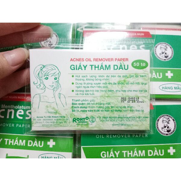 - Giấy thấm dầu Acnes - gói 50 tờ kiểm soát nhờn giúp ngăn ngừa mụn HSD 02/02/2021 + Hút sach lượng nhờn dư trên da mặt, giữ da sạh, thoáng, không bóng nhờn + Dung thường xuyên mỗi khi khi da bị nhờn, đổ mồ hôi, giúp ngăn ngừa mụn hiệu quả. + Không làm trôi lớp trang điểm, phù hợp với mọi loại da, mọi lứa tuổi.