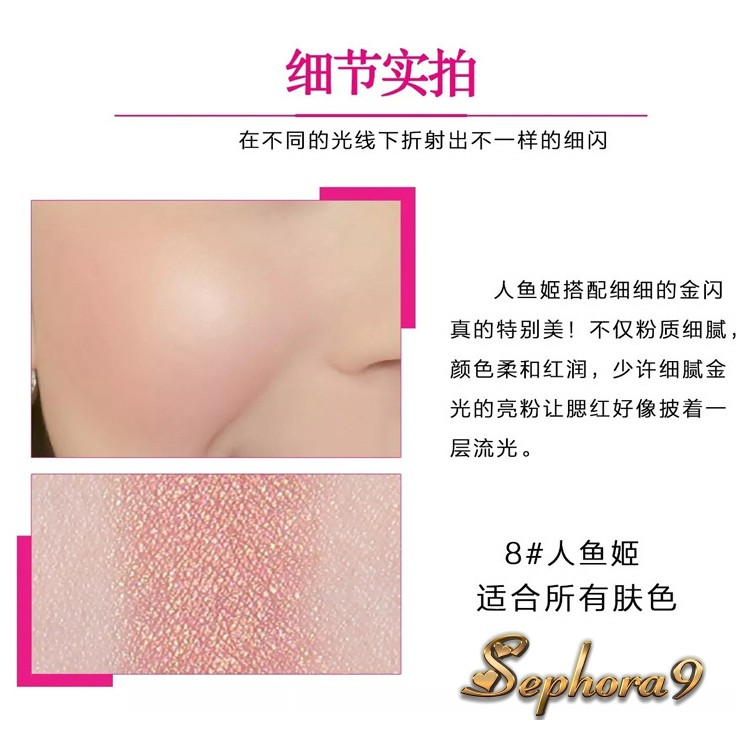 Phấn má Maycheer 8 màu cực xinh kèm chổi tán Hương thơm nhẹ nhàng Độ bám màu tốt Thiết kế nhỏ gọn xinh xắn, hộp kèm cọ tiện dụng cho các bạn nữ bỏ túi trang điểm và dặm lại màu bất cứ khi nào cần. Thiết kế lẫy bật và nam châm hút giúp nắp đóng dễ và khít hơn, cho các bạn gái cảm giác được sở hữu một món đồ sang trọng và quý phái. Má Hồng MAYCHEER Peach Blusher có kết cấu mềm, mịn, mượt với gam màu tươi trẻ cho bạn đôi má luôn ửng hổng tự nhiên, dễ thương tràn đầy sức sống. Phấn má hồng MAYCHEER sẽ đem lại cho bạn đôi má ửng hồng thật nhẹ nhàng, tự nhiên như cánh hoa đào nhỏ nhắn xinh xắn. Bảo quản ở nơi khô ráo. Thương hiệu: Maycheer #Phấnmá #Phanma #Tunhien #Benmau #Hangchinhhang #Auth