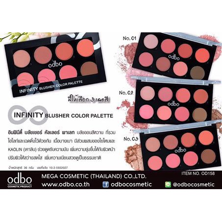 Phấn Má Hồng 8 ô ODBO Infinity Blusher Color Palette Xuất xứ: Thái Lan ✔ Set má hồng ODBO 8 ô với nhiều tông màu, có lỳ và có nhũ, có tông màu đánh khối rất tiện lợi. ✔ Sản phẩm với chất phấn mềm mịn, độ bám cao, lên màu chuẩn, trọng lượng nhiều sài được lâu lắm nhé ^^