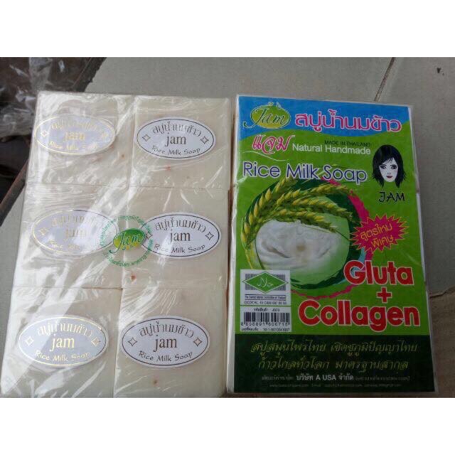 Xà phòng kích trắng cám gạo Thái Lan HÀNG CHUẨN THÁI - ko bán hàng Trung Xà phòng kích trắng cám gạo Thái Lan Jam Rice Milk Soap là sản phẩm được sản xuất tại Thái Lan với các thành phần: Rice Milk Extract, Vitamin B3, Vitamin E, dầu ô liu, dầu cọ, Glycerin tự nhiên Tiêu Dùng ThaiLand đã dần hoàn thiện, Phối hợp và cung cấp những sản phẩm chất lượng nhất để phục vụ cho khách hàng. Giá : #100k cục ( 2 cục tặng 1 vòng may mắn ) Dòng sản phẩm Xà phòng kích trắng cám gạo Thái Lan Jam Rice Milk Soap của Tiêu Dùng ThaiLand với những ưu điểm như sau: - Tác dụng đối với da mặt: + Vitamin trong sữa gạo giúp da sáng dần lên và mềm mại. - Tác dụng với làn da của cơ thể: Loại bỏ các vùng thâm đen xấu xí ở nách,bẹn và các khuỷu tay, chân. cung cấp đầy đủ cho da các vitamin dưỡng chất như vitamin B3, vitamin E ..v.v. giúp làn da luôn căng mọng và tươi trẻ mỗi ngày. ĐẶC BIỆT Xà phòng kích trắng cám gạo Thái Lan Jam Rice Milk Soap còn có một công dụng vô cùng bất ngờ là loại bỏ hoàn toàn mùi cơ thể chỉ sau vài tuần sử dụng.