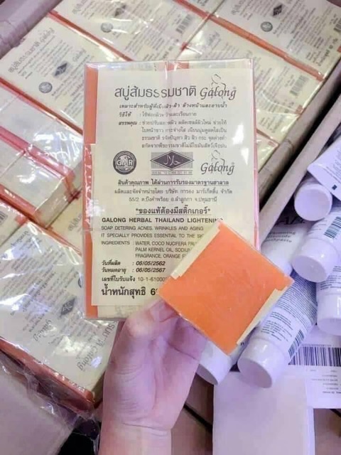 ❌SOAP NGHỆ CAM THÁI LAN 🍊🍊 🛀SOAP GẠO thì dưỡng trắng còn SOAP NGHỆ thì dành cho những người bị mụn, bị viêm lỗ chân lông ở bắp tay và lưng nhé, dùng thích mà hiệu quả lắm ạ Dùng cho cả mặt và body nha. Nhất là mùa hè này da bạn nào nhờn, lưng mụn tắm thì không có gì tuyệt hơn. SOAP NGHỆ CAM kiềm dầu rất tốt lại không bị khô da •Xuất xứ: Thái Lan •Khối lượng: 50g •Cách sử dụng: -Làm ướt mặt (hoặc cơ thể), chà một lớp xà phòng trong vòng 2-3 phút, massage nhẹ nhàng rồi rửa sạch. -Cảm nhận rõ sự khác biệt chỉ sau lần rửa đầu tiên.
