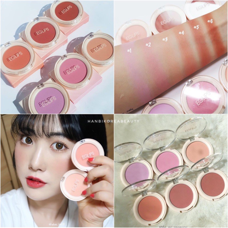 Phấn Má Eglips Cheek Fit Blusher Chất phấn mịn, cảm giác như dạng kem nên dùng tay apply lên da cũng có hiệu ứng má ửng hồng hây hây cực xinh. Giúp gò má ửng hồng nhẹ nhàng, tự nhiên. Đặc biệt da nhạy cảm cũng tha hồ dùng mà k sợ bị kich ứng, bảng thành phần không chứa hương liệu và không gây mụn cho da. Sẵn 4 màu #3 Cam sữa #4 San hô #5 Hồng đất #6 Đỏ hồng đất