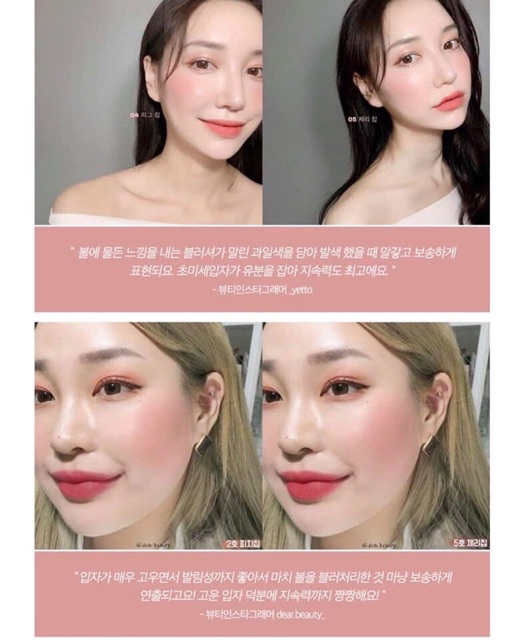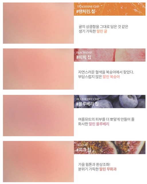 💥🍒Phấn má hồng Romand Better Than Cheek 💰Giá: #250k 🏷5 màu: #TangerineChip: Màu cam sống động chứa đựng sự tươi mát của quýt. #PeachChip: Màu hồng đào vô cùng tự nhiên và nhẹ nhàng. #BlueberryChip: Màu việt quất tươi sáng như mùa hè. #FigChip: Màu vả khô hài hòa như không khí của mùa thu. #CherryChip: Màu hồng base nâu ngọt ngào của anh đào khô. ✔️Phấn má hồng dạng nén romand better than cheek đến từ thương hiệu Rom&nd nổi tiếng trong giới làm đẹp chuyên nghiệp tại Hàn Quốc. Sản phẩm giúp mang lại đôi gò má hồng hào và gương mặt thêm rạng rỡ, tươi sáng. ✔️Romand Better Than Cheek là một sản phẩm được đánh giá cao trong dòng phấn má hiện nay. Phấn có kết cấu là những hạt mịn, tệp nhanh vào da và tạo nên hiệu ứng mờ giúp che phủ lỗ chân lông, cho da mịn màng lên trông thấy. ✔️Phấn má romand có ưu điểm là không bị vón cục, hấp thụ mồ hôi và bã nhờn tốt, vì vậy khi lên da rất mướt và giữ hiệu ứng cho lớp make up lì mịn trong thời gian dài. Chery