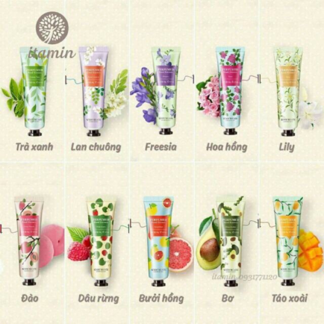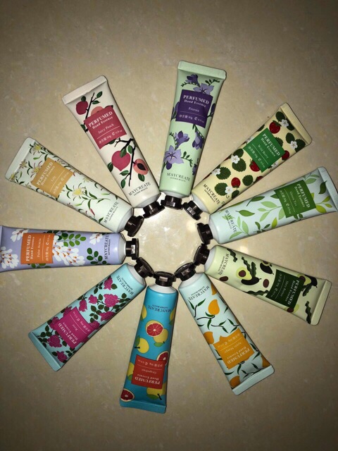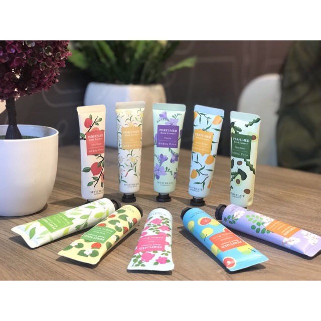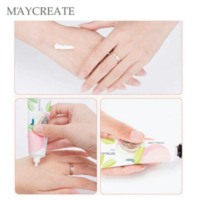 Kem dưỡng da tay của hãng Maycreate. Công dụng: giúp dưỡng ẩm, và mềm da, sáng hơn. Có 10 vị như ảnh : bơ, hoa hoè, dâu, trái cây, hoa lili, hoa hồng, đào táo, trà xanh, hoa lan nam phi Khối lượng: 30g