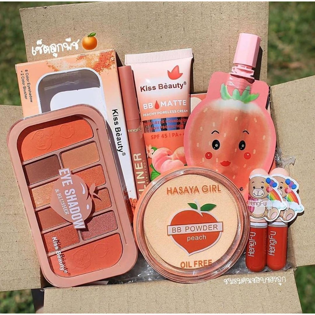 Bộ trang điểm KBT 7 món thái lan GỒM CÓ : - 1 phấn mắt kiêm má hồng 10 ô đào tone màu cực đẹp - 1 kẻ mắt nước siêu nét hengfu - 1 phấn phủ hasaya gidl kiềm dầu - 1 kem nền đào che mờ tất cả các khuyết điểm - 1 son kem lá đào tone đỏ cực xinh - 2 cây son kem nhí siu cute phô mai que TẤT CẢ HÀNG CÓ SẴN VÀ CAM KẾT NHƯ HÌNH. KHÁCH YÊN TÂM ĐẶT HÀNG ẠK NHẬN ODER HÀNG THÁI THEO YÊU CẦU KHÔNG QUA TRUNG GIAN IB NGAY ZALO 0906 890 818