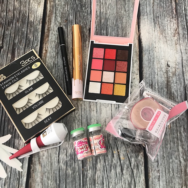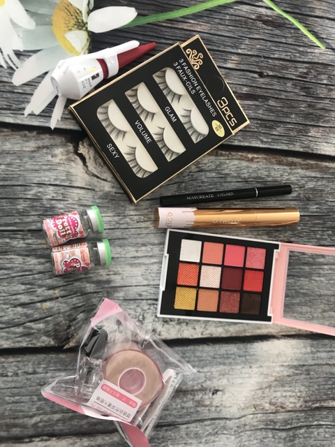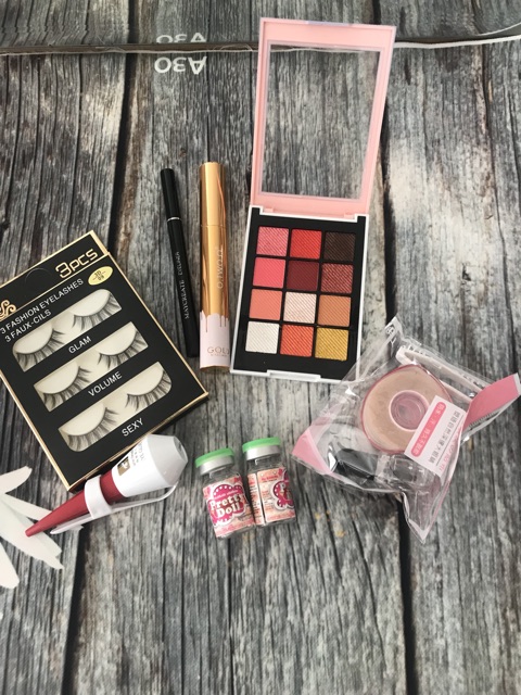 Com bo giành cho mắt bao gồm 1) phấn mắt: 145k 2) mascara : 100k 3) kẻ mắt: 65k 4) mi giả: 45k 5) keo gắn mi: 50k 6) lens: 80k 7) kích mí kèm keo : 60k Tổng 545k mua theo combo còn 465k nha khách yêu #combogiare #combotrangdiem