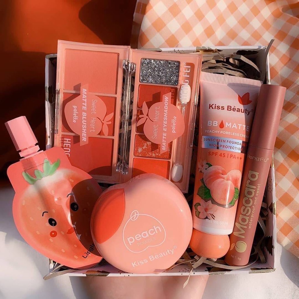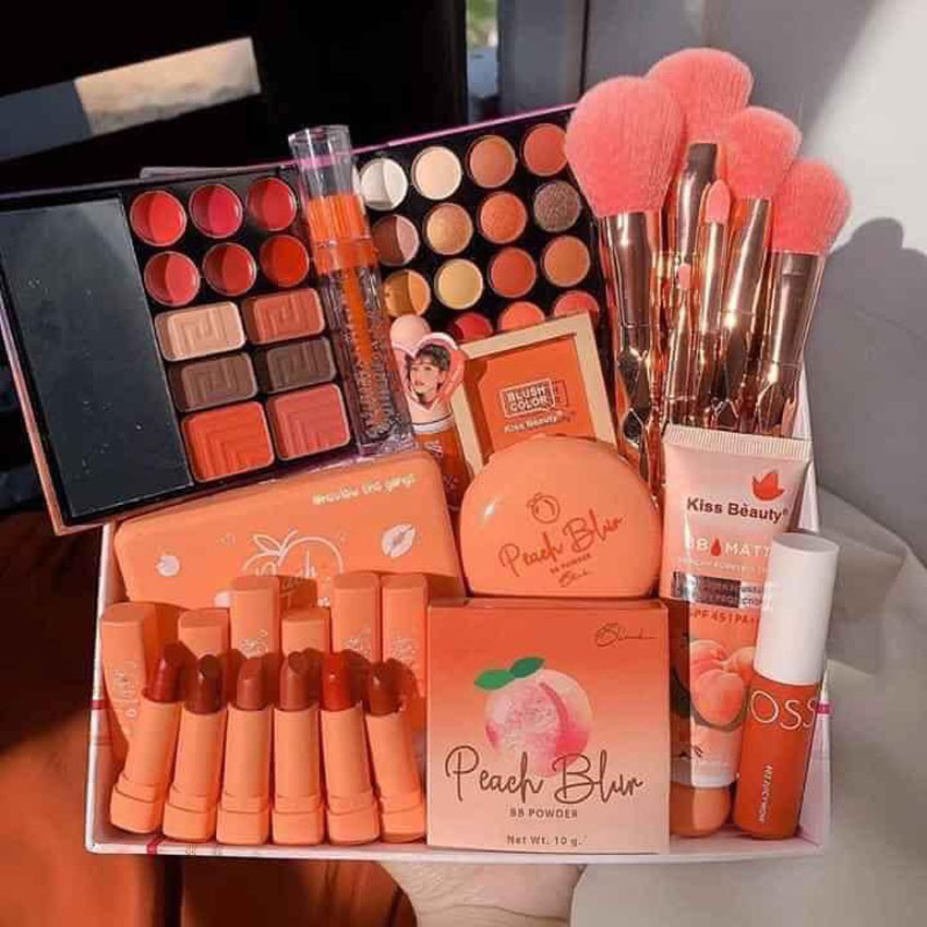 Sản phẩm Bộ Trang Điểm Trái Đào Kiss Beauty Đầy Đủ 16 Món Chuyên Nghiệp. Tone Cam Đào Siêu Xinh. Tặng Kèm 1 Băng Đô Dễ Thương hiện đang được bán tại Shopee.