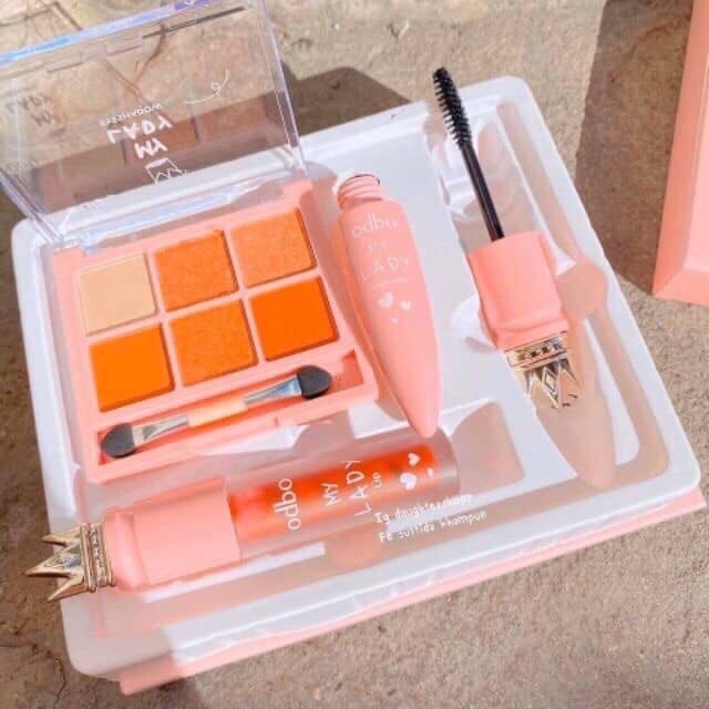 ❣️Bộ trang điểm của Odbo thái lan. 💥Bộ gồm hộp phấn mắt 6 ô, 1 son kem lì tone đỏ và 1 mascara dày mi không lem không trôi....