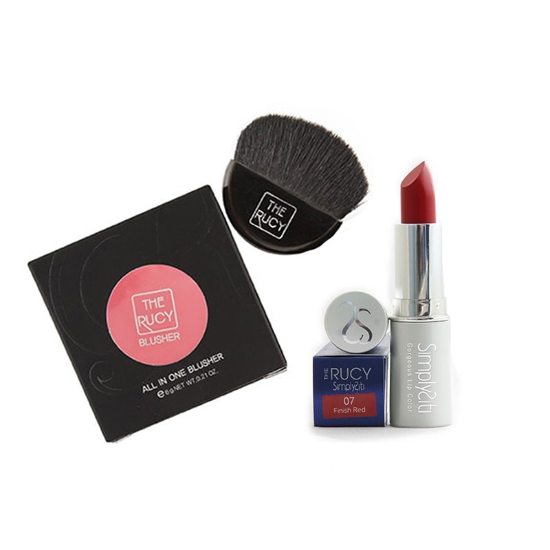 Bộ trang điểm bao gồm: 1. PHẤN MÁ HỒNG THE RUCY ALL IN ONE BLUSHER #1 Phấn má hồng All In One Blusher với những tone màu tự nhiên tạo hiệu ứng màu sắc tươi tắn mang tới một vẻ đẹp hoàn hảo, lưu giữ lâu, không bị trôi lem. Sản phẩm sử dụng công thức bột ẩm đặc biệt, hạt phấn nhỏ li ti, có độ bám dính cao giúp lưu giữ lớp phấn trong nhiều giờ liền, và mang lại cho bạn cảm giác dễ chịu, mềm mại. Với thiết kế nhỏ gọn, hộp nhựa tiện dụng, đi kèm một cọ và gương giúp bạn dễ dàng sử dụng và mang theo bên mình. 2.SON SIMPLYSITI TINTLIPSTICK SLLVER # 7 Son Lì lâu trôi Simplysiti Tintlipstick Silver có chất son mềm mịn, khả năng bám màu lâu, đồng thời tăng cường các thành phần dưỡng môi tự nhiên từ Vitamin E, dầu hạt thầu dầu, sáp cây cọ... giúp hạn chế và khắc phục tình trạng môi khô và thâm, cho đôi môi luôn rạng rỡ và quyến rũ. Son có nhiều màu cho bạn lựa chọn. Son Lì lên màu chuẩn và bền màu suốt cả ngày Kết cấu son nhẹ nhàng, không nặng nề Kết hợp với Collagen và Vitamin E từ tự nhiên dưỡng môi căng mộng, làm hồng và chống thâm môi, bạn sẽ hoàn toàn yên tâm sử dụng mà không phải lo ngại bị lộ khuyết điểm về màu môi hay xuất hiện vảy môi NSX và HSD xem trên bao bì sản phẩm