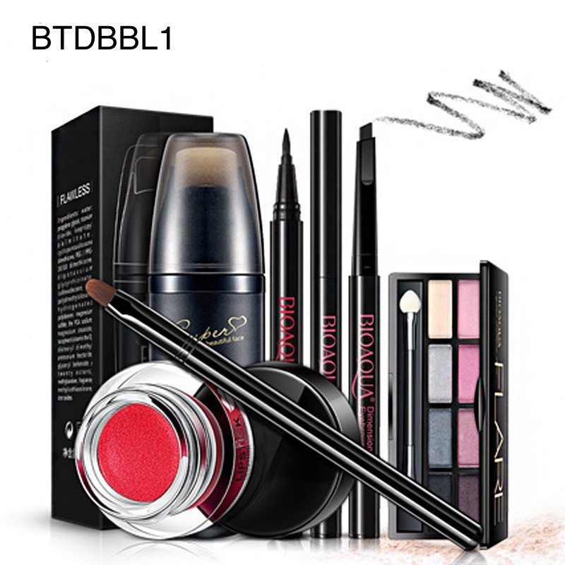BỘ TRANG ĐIỂM LĂN 5 MÓN KÈM SON Xuất xứ : Đài Loan Bộ 5 Sản Phẩm sẽ cho chúng ta đưuọc 1 lớp trang điểm nhanh, gọn, đầy đủ các bước cơ bản : Bút kẻ mắt cải tiến với đầu cọ sắc nét chỉ 0.01mm, cực kì linh hoạt giúp bạn dễ dàng vẽ mắt từ nét mỏng tự nhiên đến dày cá tính. Công nghệ màng phim độc đáo không lem, không trôi suốt 17 giờ lại hoàn toàn dễ tẩy trang. Chì kẻ chân mày đầu chì dạng ngang định dạng chân mày, cọ bột giúp tán đều cho nét mày đầy đặn, tự nhiên, mềm mại. Kem che khuyết điểm với khả năng che phủ hoàn hảo giúp che phủ tốt các khuyết điểm trên da. Duy trì lớp trang điểm trong thời gian dài mà không xảy ra hiện tượng xuống tông khiến khuôn mặt bị tối. Phấn tạo cảm giác da mướt, mượt mà không bị mốc hay khô da. Độ kiềm dầu tốt, phù hợp với cả bạn da dầu hay hỗn hợp dầu đến da thường. Kết cấu kem mềm mỏng mịn giúp tăng khả năng bám trên da và không bị bết dính. Son môi dạng gel không gây khô môi, tiện lợi khi sử dụng, chất son đem lại cái cảm giác trên môi bạn là môi mềm, mịn, matte, cùng với màu sắc tinh tế khiến ai nhìn vào cũng bị đắm chìm sự quyến rũ. Phấn mắt với tông màu cực tây , và độ bám màu lâu. Giúp chúng ta duy trì màu mắt suốt thời gian đi tiệc, chụp ảnh, đi chơi.