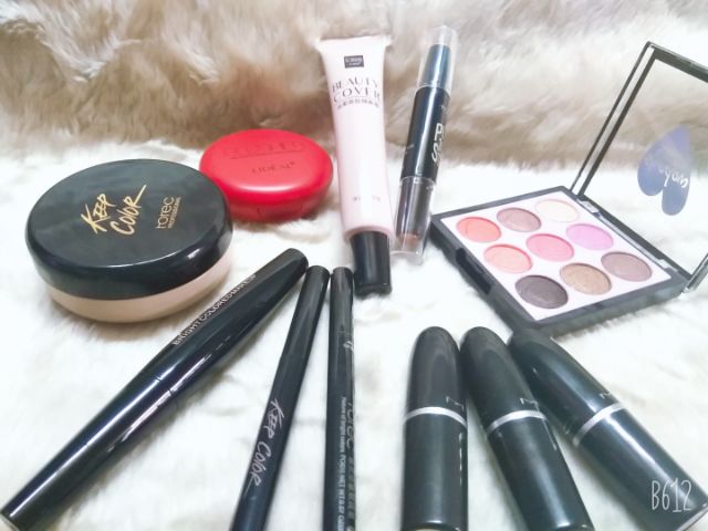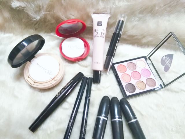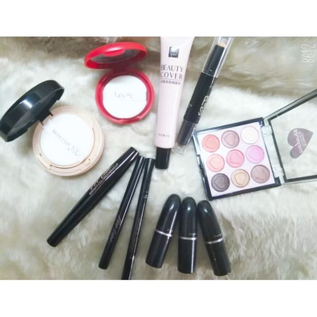 Bộ sản phẩm gồm +phấn nước +kem lót nền +phấn má hồng +che khuyết điểm 2 đầu +mascara +chì kẻ mắt +chì kẻ mày ngang +phấn mắt +3 thỏi son