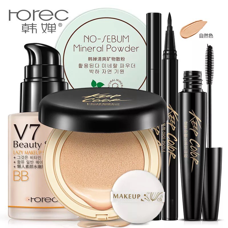 Bộ trang điểm mặt gồm 5 món : + Bút kẻ mắt BIOAQUA cải tiến với đầu cọ sắc nét chỉ 0.01mm, cực kì linh hoạt giúp bạn dễ dàng vẽ mắt từ nét mỏng tự nhiên đến dày cá tính. Công nghệ màng phim độc đáo không lem, không trôi suốt 17 giờ lại hoàn toàn dễ tẩy trang. + Mascara BIOAQUA đầu cọ mới vuốt mi cong vút 100º, chải từng sợi cho mi tơi, dày đều. Dạng gel đặc biệt, nhẹ, mượt giữ mi cong suốt 18h, mi dày gấp 3 lần, không vón cục, không lem, không trôi. + Phấn nước nền với khả năng che phủ hoàn hảo giúp che phủ tốt các khuyết điểm trên da. Duy trì lớp trang điểm trong thời gian dài mà không xảy ra hiện tượng xuống tông khiến khuôn mặt bị tối. Phấn tạo cảm giác da mướt, mượt mà không bị mốc hay khô da. Độ kiềm dầu tốt, phù hợp với cả bạn da dầu hay hỗn hợp dầu đến da thường. Kết cấu kem mềm mỏng mịn giúp tăng khả năng bám trên da và không bị bết dính. + Kem lót mịn da với kết cấu gel mịn dễ tán tạo hiệu ứng thu nhỏ lỗ chân lông, ngăn bóng nhờn nhưng vẫn cung cấp đủ độ ẩm cho da và chiết xuất cherry chống lão hóa da. +Phấn bột No sebum mineral powder -Phấn phủ dạng bột No Sebum Mineral Powder hoàn toàn chiết suất từ cây bạc hà và khoáng chất có nguồn gốc tự nhiên Jeju. -Phấn no sebum nhỏ có tác dụng hút nhiều dầu, mồ hôi, điều chỉnh độ ẩm trên da giúp da mềm mại, thông thoáng mà không hề bị bí. Khoáng chất giúp da khỏe mạnh hơn, ngăn ngừa mụn. Phấn khoáng bột với 06 ưu điểm nổi bật : - Không độc hại, không kích ứng da - Mùi thơm, khi dùng lên mặt thấy rất mát và mịn, mềm da. - Kiềm soát lượng dầu nhờn trên da, không tạo lớp bóng nhờn khi trang điểm. -Có kèm bông phấn khá là tốt, thiết kế nhỏ gọn nên có thể bỏ túi mang đi mọi lúc mọi nơi - Tone màu phù hợp với tất cả mọi loại da, kể cả da sáng và da tối. - Có thể sử dụng với rất nhiều mục đích khác nhau: dùng làm lớp phấn phủ, dùng để sửa lớp trang điểm, dùng làm primer cho mắt, dùng để đánh lên tóc khi tóc bị bết, có thể dùng thay giấy thấm dầu,