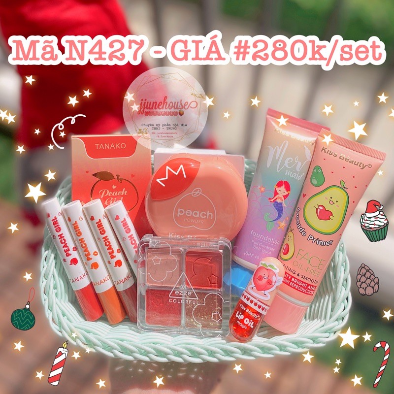 🎄🎄 Set makeup N427 cơ bản ✨Dành cho các nàng mới tập tành các bước đầu tiên của makeup, nên set gồm các sp siêu cơ bản như: - Primer kem lót bơ #65k - BBCream tiên cá Kissbeauty - Phấn phủ trái đào - Set 4 son Peach Girl Tanako - Bảng phấn mắt 4 ô Mezze - Son bóng Lip Oil ⛔️ Hàng set makeup #KHÔNG #THỂ #THAY #ĐỔI #HOẶC #THÊM #BỚT #SẢN PHẨM. Các bạn mún mua sản phẩm theo ý thích, có thể mua lẻ từng món giúp shop nha♥️ Shop đều có bán lẻ tất cả sản phẩm trong set ♥️ 〰️〰️〰️〰️〰️ 🌸Thiên đường mỹ phẩm Thái - Trung ▪️Hàng có sẵn ▪️Hàng mới về mỗi tuần ▪️Chỉ bán hàng chính hãng 🚚Ship hàng COD toàn quốc