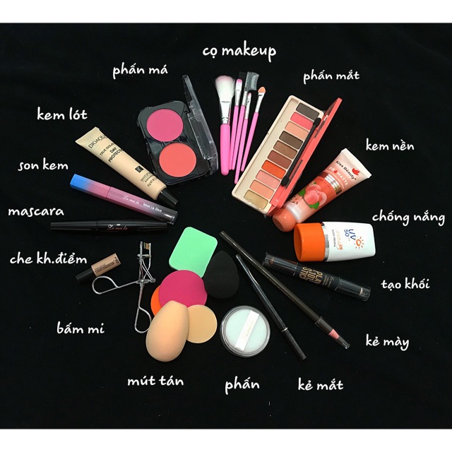 TRỌN BỘ MAKEUP 15 MÓN 🖤 🖤 Bộ cọ 🖤 Phấn mắt 🖤 Kem nền 🖤 Kem chống nắng 🖤 Tạo khối 🖤 Kẻ mày 🖤 Kẻ mắt 🖤 Phấn phủ 🖤 Mút tán 🖤 Bấm mi 🖤 Che khuyết điểm 🖤 Mascara 🖤 Son 🖤 Kem lót 🖤 Phấn má