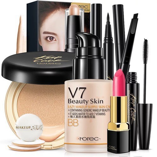 BỘ MAKEUP V7 TRONG SET BAO GỒM: + 1 MASCARA + 1 CHE KHUYẾT ĐIỂM 2 ĐẦU + 1 KẺ MÀY NGANG + 1 KẺ MẮT NƯỚC + 1 PHẤN NƯỚC
