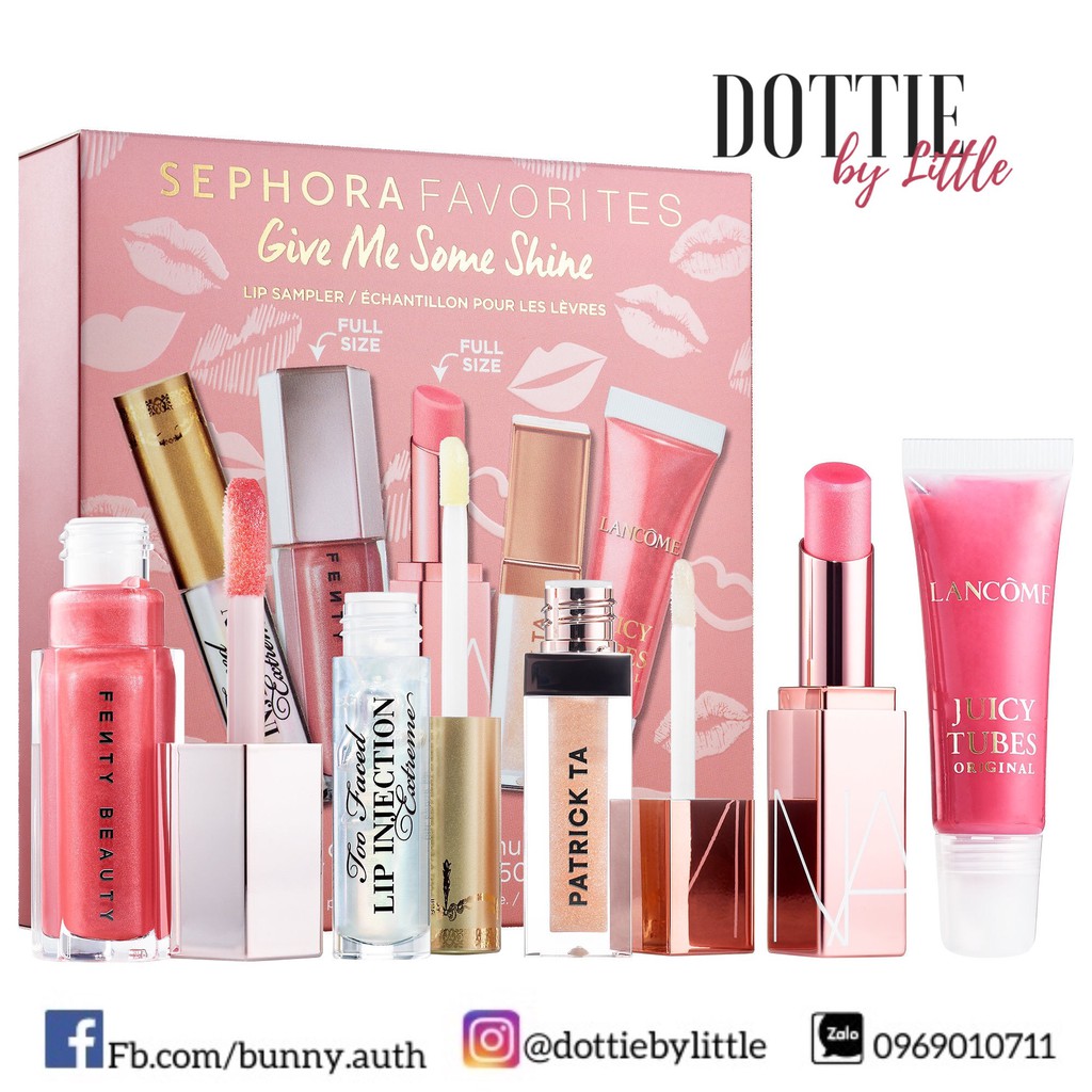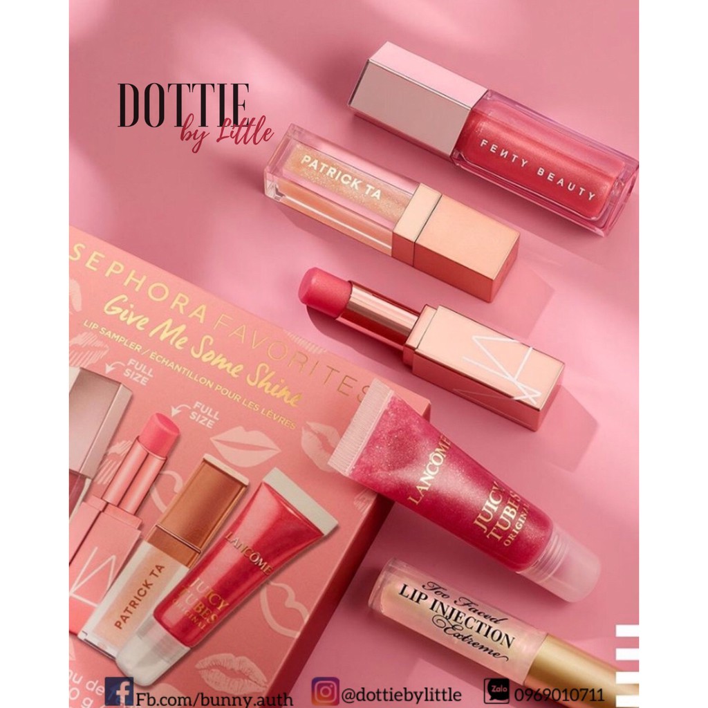 Bộ sưu tầm Give Me Some Shine gồm 5 thỏi son dưỡng và son bóng giúp giữ ẩm và tạo cho đôi môi hiệu ứng căng mọng. Nguyên set trị giá gần 2 chiệu đó nha. SL có hạn. 💧Son Fent.y Beauty Gloss bomb màu Fu$$y #fullsize 9ml | Value $19 💧Son NAR.S Afterglow lip balm #fullsize 3g | Value $28 💧 Son LanCom.e Juicy Tubes original 10ml 💧 Son Pactrick T.a lip shine 3ml 💧Son 2Faced Lip Ịnection Extreme lip plumber 1.5g (thỏi này rất là đáng đồng tiền vì môi siêu căng mọng nha) 𝐓𝐡𝐚𝐦 𝐠𝐢𝐚 𝐠𝐫𝐨𝐮𝐩 𝐬𝐚̆𝐧 𝐃𝐄𝐀𝐋 𝐯𝐚̀ 𝐛𝐚́𝐧 𝐒𝐈̉ https://www.facebook.com/groups/ordercathegioi ______________________________ 𝐃𝐨𝐭𝐭𝐢𝐞𝐛𝐲𝐋𝐢𝐭𝐭𝐥𝐞 - 𝐎𝐫𝐝𝐞𝐫 𝐒𝐢̉ 𝐋𝐞̉ 𝐃𝐮𝐭𝐲𝐟𝐫𝐞𝐞, 𝐜𝐚́𝐜 𝐧𝐮̛𝐨̛́𝐜 𝐮𝐬-𝐮𝐤-𝐝𝐞-𝐞𝐬-𝐡𝐚̀𝐧.... ☑️ 𝐒𝐢̉/𝐂𝐓𝐕 𝐙𝐚𝐥𝐨 𝟎𝟗𝟔𝟗𝟎𝟏𝟎𝟕𝟏𝟏 ❤️ IG: @dottiebylittle ❤️ FB: https://www.facebook.com/bunny.auth ❤️Shopee: https://shopee.vn/minhtuan071191 #dottiebylittle #hanoi #vietnam #hangxachtay #order #hangorder #authentic #nuochoa #mypham #quanao #hangcosan #cosmetic #authenticcosmetic #zara #hm #kiehls #esteelauder #lipstick #skincare
