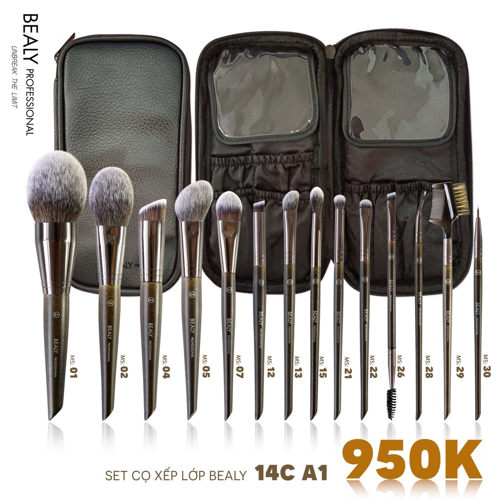 SET CỌ TRANG ĐIỂM XẾP LỚP BEALY 14C A1 (2020) Set Cọ Xếp Lớp Bealy 14C thuộc dòng A1 là combo cọ makeup cá nhân cao cấp. CỌ XẾP LỚP LÀ GÌ? Cọ Xếp Lớp là dòng cọ do thương hiệu Bealy độc quyền sáng tạo và nghiên cứu. Quá nhàm chán với thiết kế lông cọ xếp bằng. Nhận thấy nhược điểm ngày càng rõ của dòng cọ truyền thống, Bealy sáng tạo ra dòng cọ mới với các lớp lông đan xen vào nhau, thành từng tầng, từng lớp, giúp tăng diện tích tiếp xúc của lông cọ và da mặt lên gấp 5 lần so với trước đây. Không chỉ vậy thiết kế xếp lớp cũng giúp lớp phấn được dàn trải đều ở đầu cọ, tránh hiện tượng tụ phấn, vón cục, phấn nhờ vậy thẩm thấu và bám trên lớp biểu bì chắc hơn. Đặc biệt thiết kế này giúp cọ mắt tăng hiệu quả tán phấn, bay màu ngọt, đều, nhanh. Tặng Túi Đựng Cọ Da Bealy Professional 8 Ngăn Chất Liệu Cán Cọ Gỗ đặc còn giữ nguyên vẹn lớp vân gỗ. Ống cổ cọ bằng hợp kim chắc chắn, sáng bóng, chống han rỉ HƯỚNG DẪN VỆ SINH VÀ BẢO QUẢN CỌ MUA NGAY NƯỚC RỬA CỌ CHUYÊN DỤNG MISS ROSE Các bạn nhớ vệ sinh cọ xếp lớp tối thiểu 1 lần 1 tuần để đảm bảo cọ vừa bền đẹp, vừa vệ sinh nhé. Khi vệ sinh cọ bạn chỉ cần Massage cọ trong lòng bàn tay với dung dịch vệ sinh cọ chuyên dụng. Hướng cọ chúc xuống khi xả với nước sạch để đảm bảo đầu cọ luôn chuẩn form. Các bạn tham khảo 5 bước vệ sinh cọ đơn giản mà Bealy mách nha! Bước 1: Làm ướt đầu lông cọ. Lưu ý chỉ làm ướt đầu lông cọ, tránh nhúng cả cây cọ vào nước. Tuyệt đối tránh ngâm rửa cả thân cọ vào nước. Điều này có thể gây hiện tượng nứt cán cọ và rụng lông sau này Bước 2: Massage đầu lông cọ với dụng cụ vệ sinh cọ chuyên dụng và nước rửa cọ Bước 3: Hướng chổi chúc xuống, tiếp tục xả lại với nước cho sạch hết bọt Lưu ý phải chúc đầu lông cọ xuống để tránh nước chảy ngược vào ống cổ cọ Bước 4: Vắt hết nước trong cọ bằng một chiếc khăn sạch. Bước 5: Để khô tự nhiên trên khăn giấy. Bước 6: Phơi cọ ở nơi khô ráo, hướng đầu cọ trúc xuống. Bạn có thể sử dụng giá phơi cọ để giữ đầu cọ hướng xuống, nhằm giúp nước chảy hết ra ngoài tránh hiện tượng nước chảy ngược vào thân và cổ cọ.