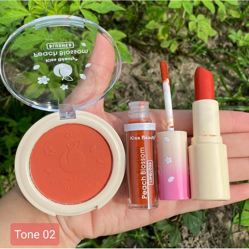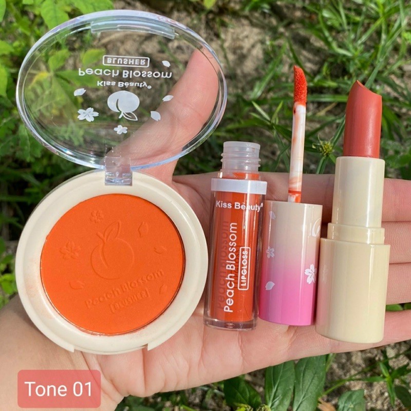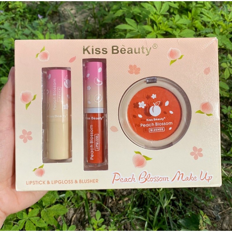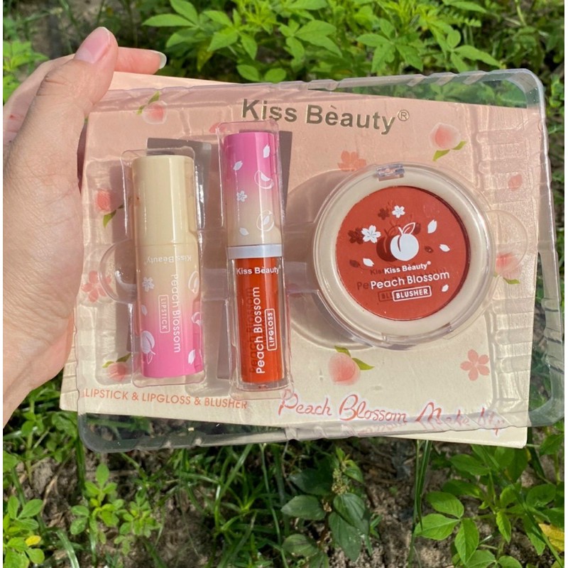 Set 3 sp Kiss Beauty xinh ơi là xinh tiện dụng vô cùng có sẵn 2 tone Gồm : - 1 som kem + 1 son thỏi cùng màu cực lì màu - 1 má hồng siêu mịn